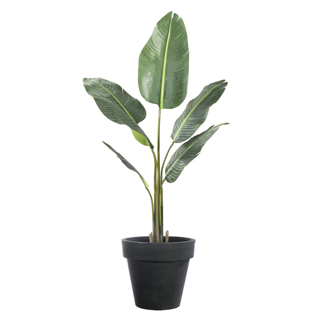 L'arbre du voyageur aussi connu sous le nom de Ravenala ou ravinala est une plante tropicale de la famille des streliziaceae originaire de madagascar, c'est une espèce endémique. Il ne s’agit pas d’un arbre au sens botanique du terme mais d’une plante herbacée érigée sur un stipe. Souvent apparenté à un palmier. Cet arbre du voyageur artificiel est proposé en trois tailles 130, 190 et 210 cm  Il est fixé dans un support de plantation, un pot en pvc lesté. La taille correspond à la dimension entre la base du pot et le sommet de l'arbre.