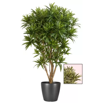 Dracaena artificiel  est composé d'un tronc en bois naturel et d'un feuillage en tergal, soit en vert (deux tons de vert) soit panaché (vert/jaune), 145 cm de hauteur pour une belle envergure de 90 cm. vendu dans un pot PVC lesté (support de plantation) plante artificielle