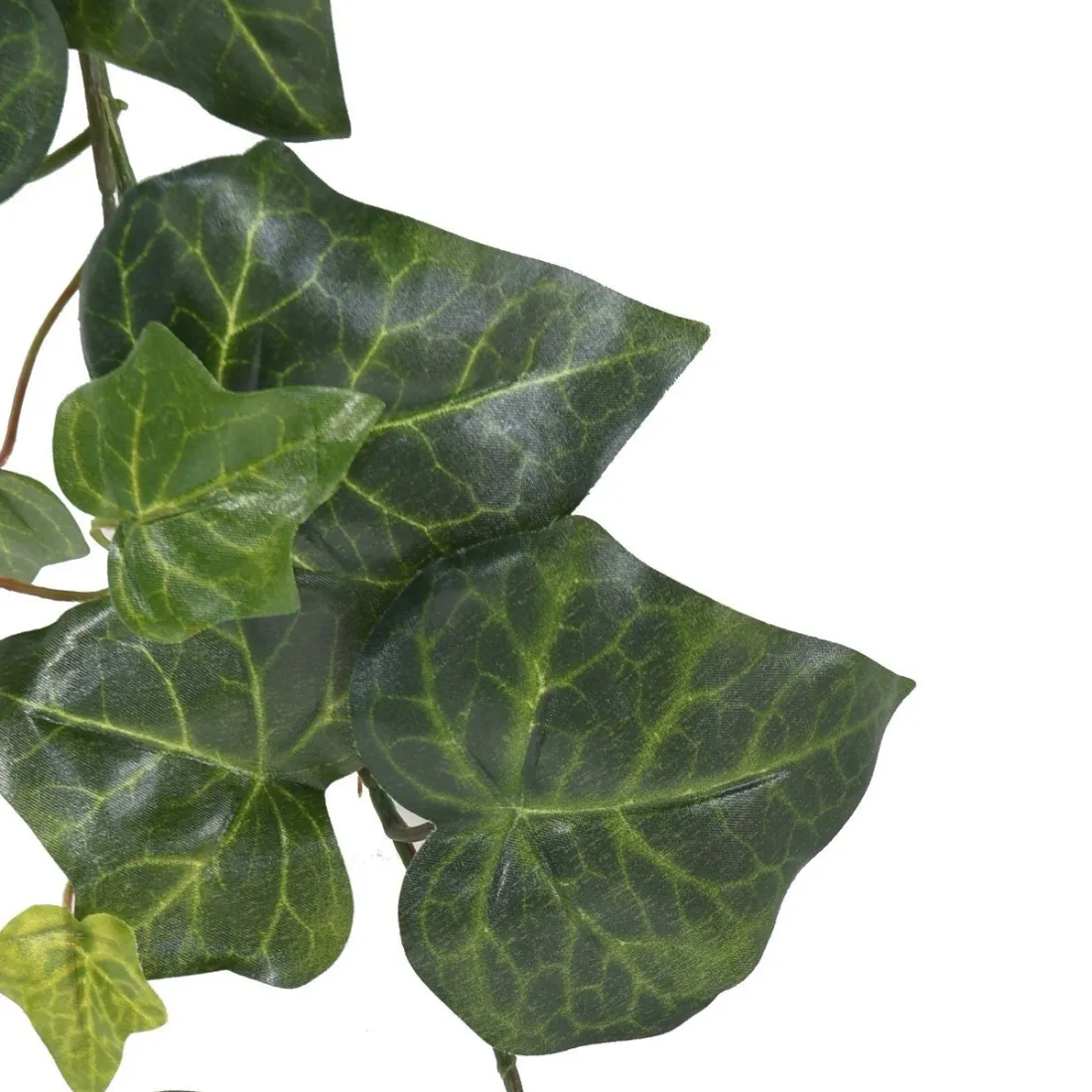 Ce beau lierre peut être considéré réaliste et haut de gamme. Le prix du lierre artificiel est intéressant car il englobe 2 lianes feuillues différentes, de hauteur 180 cm chacune. L'aspect des feuilles est très détaillé, avec des dimensions variées et des nervures bien présentes. Le découpage est net et précis, ce qui donne une apparence naturelle à l'ensemble. Pour que le lierre paraisse encore plus vrai, des imitations de petits crampons sont disposées le long des tiges principales; ceux-ci permettent au lierre naturel de s'agripper sur les supports comme les murs. Ce lierre factice a plutôt vocation à être installé à l'intérieur. Si vous souhaitez réaliser une décoration à l'extérieur, privilégiez un modèle plus résistant aux conditions extérieures.