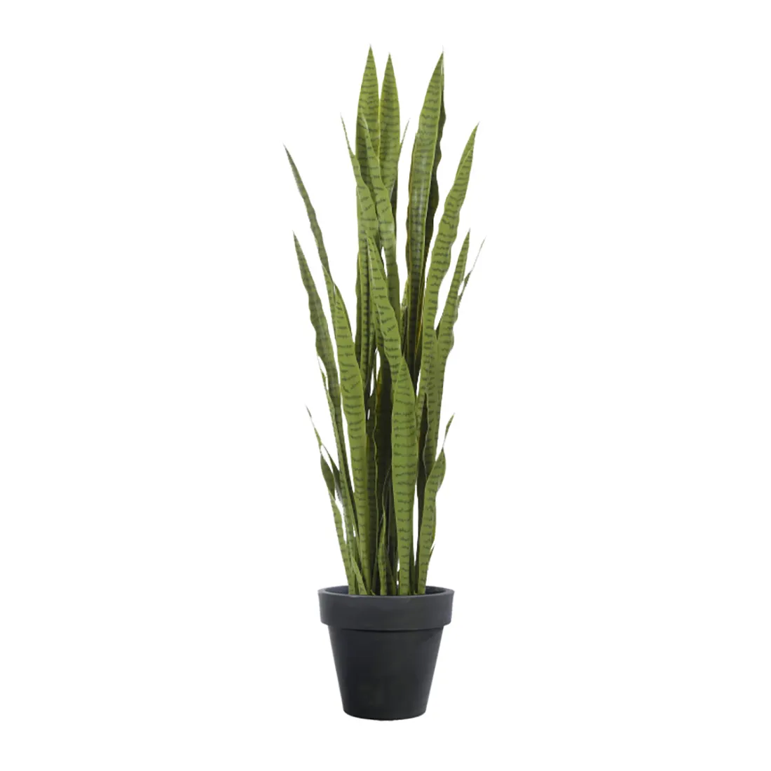 Ce sansevieria artificiel large ou sansevière est composée de feuilles en polyéthylène, matière plastique, vert ou vert jaune. Il mesure 110 cm de hauteur pour une envergure de 50 cm . Livré dans un pot PVC lesté servant de support de plantation, plantes artificielles
