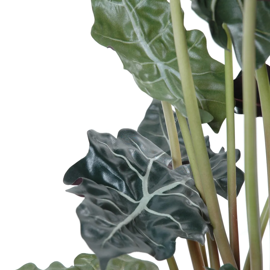 Cet Alocasia artificiel est une plante verte d'intérieur au feuillage tout à fait remarquable, en forme d'oreilles d'éléphant. Très esthétique, très sculptural, il apportera une touche d’exotisme à votre salon, véranda... Son impressionnant feuillage en fait un élément déco à part entière. Dans un massif au milieu d'autres plantes artificielles, ce végétal équatorial donnera un rendu très décoratif. Superbe imitation du véritable Alocasia.