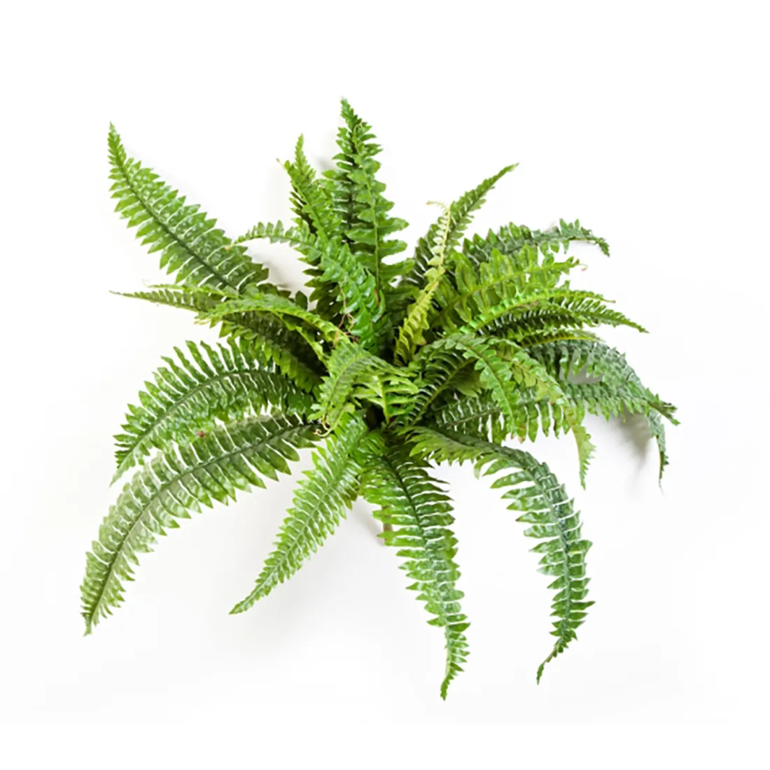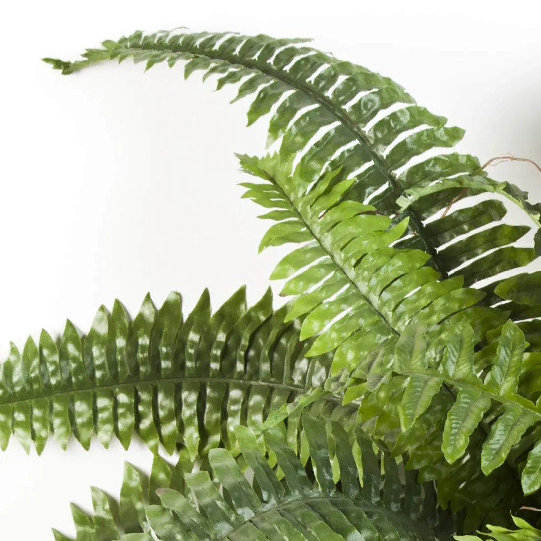 Originaire d’Amérique, la fougère de Boston aussi appelée Nephrolepis exaltata, est couramment utilisée comme plante ornementale et dépolluante dans nos habitations. Afin de vous offrir un aspect naturellement dense et verdoyant, cette fausse plante de fougère dispose de belles feuilles artificielles cisaillées et ondulées en tissu, montées sur des tiges recouvertes de PVC vert simulant un port retombant. Les différentes teintes de vert de son feuillage synthétique permettent d’obtenir un résultat fidèle au naturel d’une plante en pleine croissance mais qui ne vous demandera aucun entretien pour conserver cet état d’épanouissement !