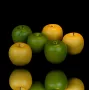 Le filet est composé de 6 pommes de tailles identiques : 3 jaunes et 3 vertes.