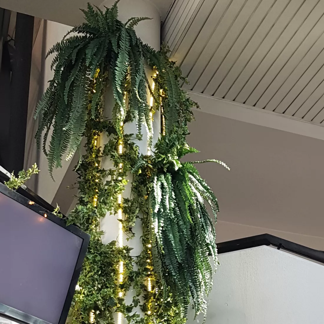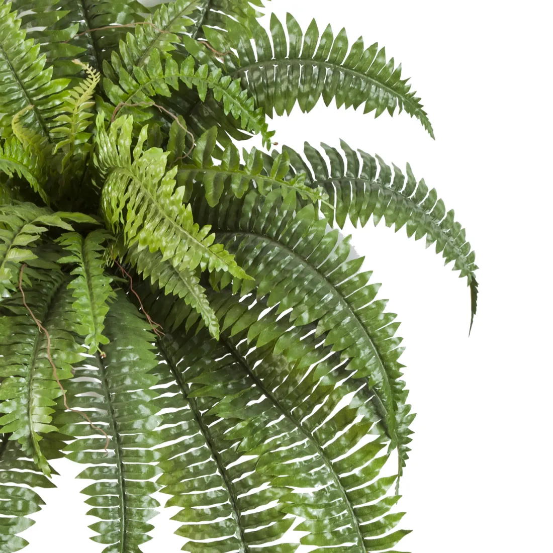 Grâce à ses dimensions impressionnantes cette fausse fougère décorative peut constituer à elle seule un habillage de mur ou plafond végétalisé et est également idéale pour dissimuler des éléments disgracieux (passage de tuyaux, câbles etc.). Seule dans un panier suspendu ou un pot en hauteur lesté, vous obtiendrez une véritable cascade de verdure. En accompagnement, on la retrouve plutôt accrochée en hauteur avec d'autres fausses plantes comme les retombantes car son volume prend toute sa splendeur dans cette position.