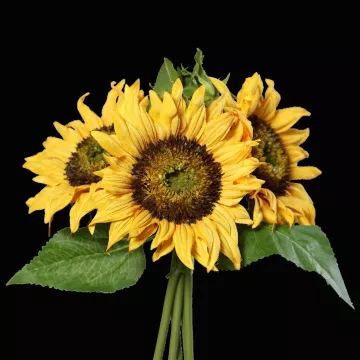 Le tournesol symbolise le soleil et l'épanouissement de manière imagée ou personnelle. C'est une fleur champêtre de saisons estivale et automnale que l'on trouve également dans nos jardins pour son côté déco. Notre tournesol artificiel possède un diamètre moyen, il est donc aisé de l'assembler en bouquet mais aussi de l'incorporer dans une composition florale artificielle. Toutes les fausses fleurs des champs, ainsi que les fleurs artificielles du jardin peuvent lui être associées; essayez toutefois de respecter une cohérence de saisonnalité votre assortiment n'en sera que plus harmonieux. En optant pour ce tournesol, vous apporterez une note naturelle et intemporelle dans votre intérieur, sans les contraintes d'entretien des fleurs fraîches et pour une période quasi éternelle.