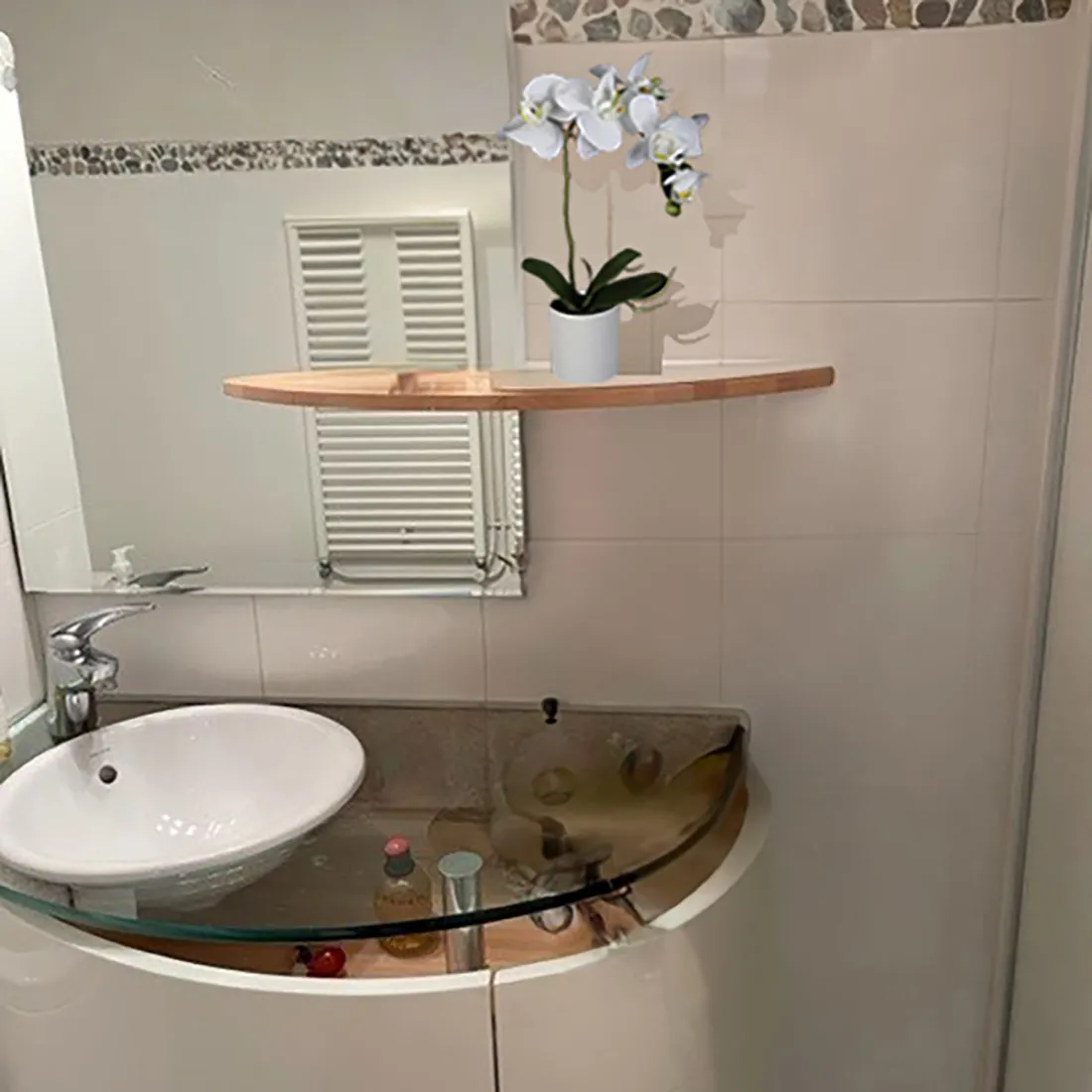 composition orchidée phalaenopsis artificielle, hauteur totale: 39 cm pour une largeur de 20 cm