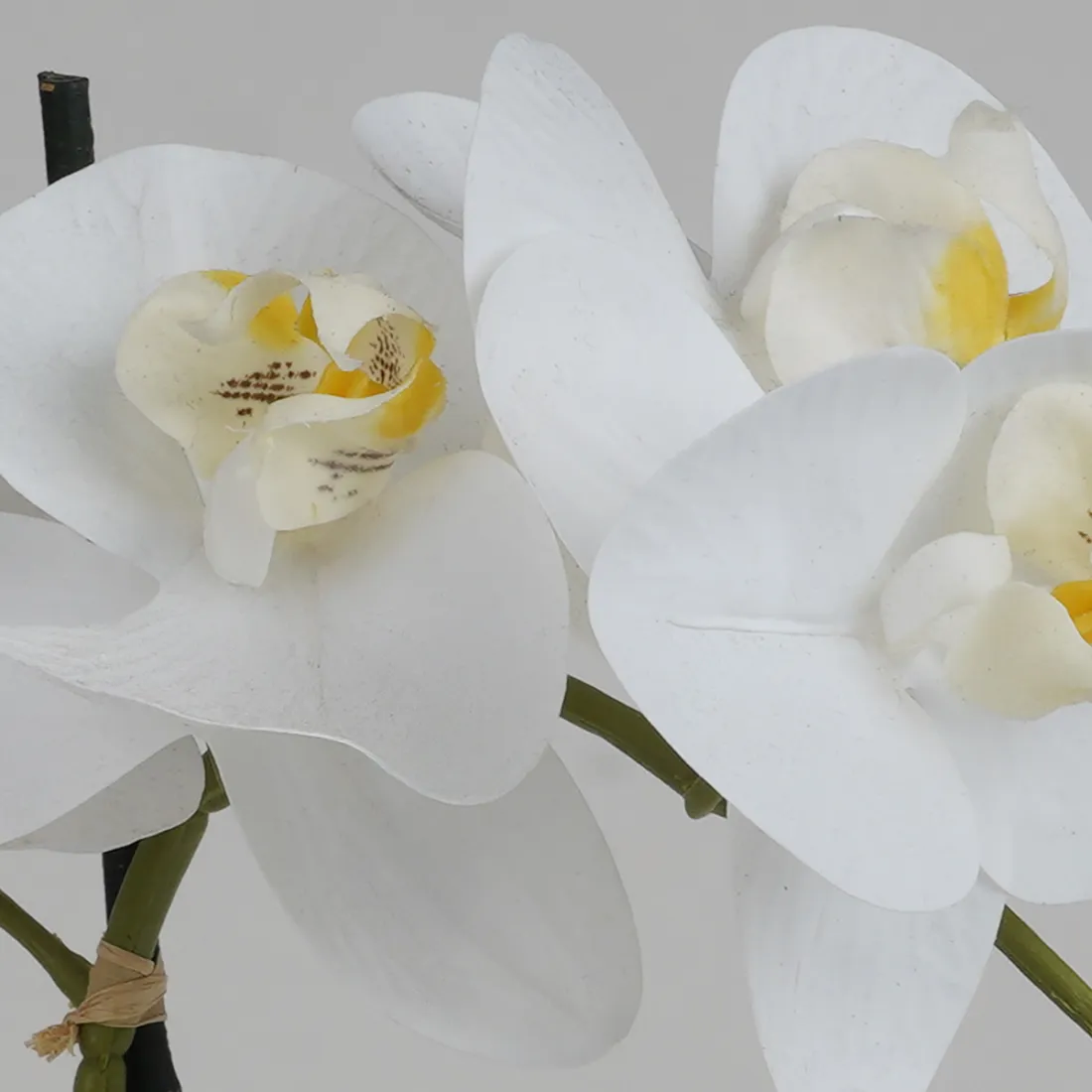 Composition d'orchidée phalaenopsis artificielle. 2 tailles disponibles au choix: H60cm largeur 30cm, 3 tiges fleuries; ou H70 cm largeur 40 cm, 5 hampes florales - Fleurs 10 cm de diamètre, fleurons 5 cm