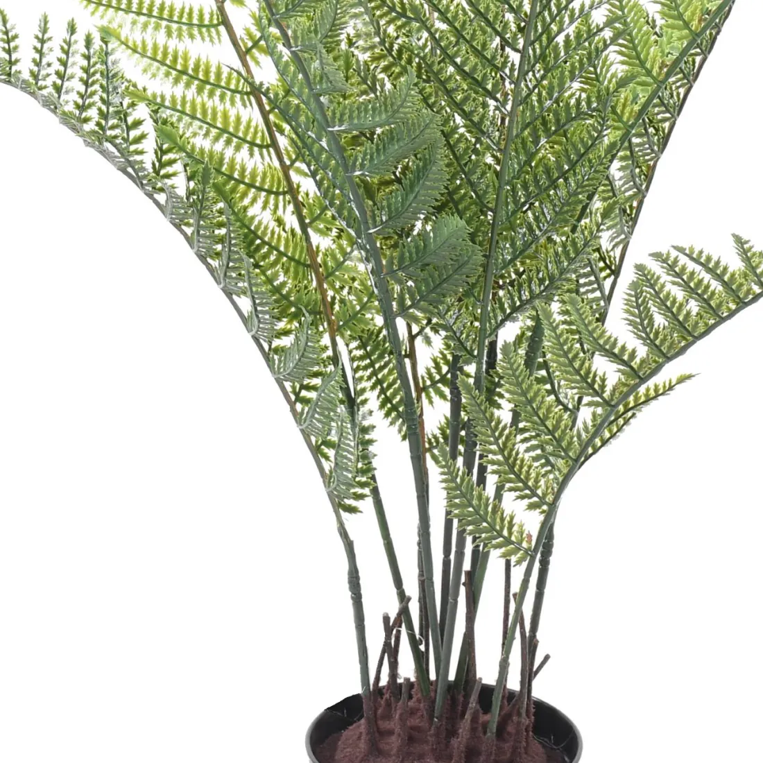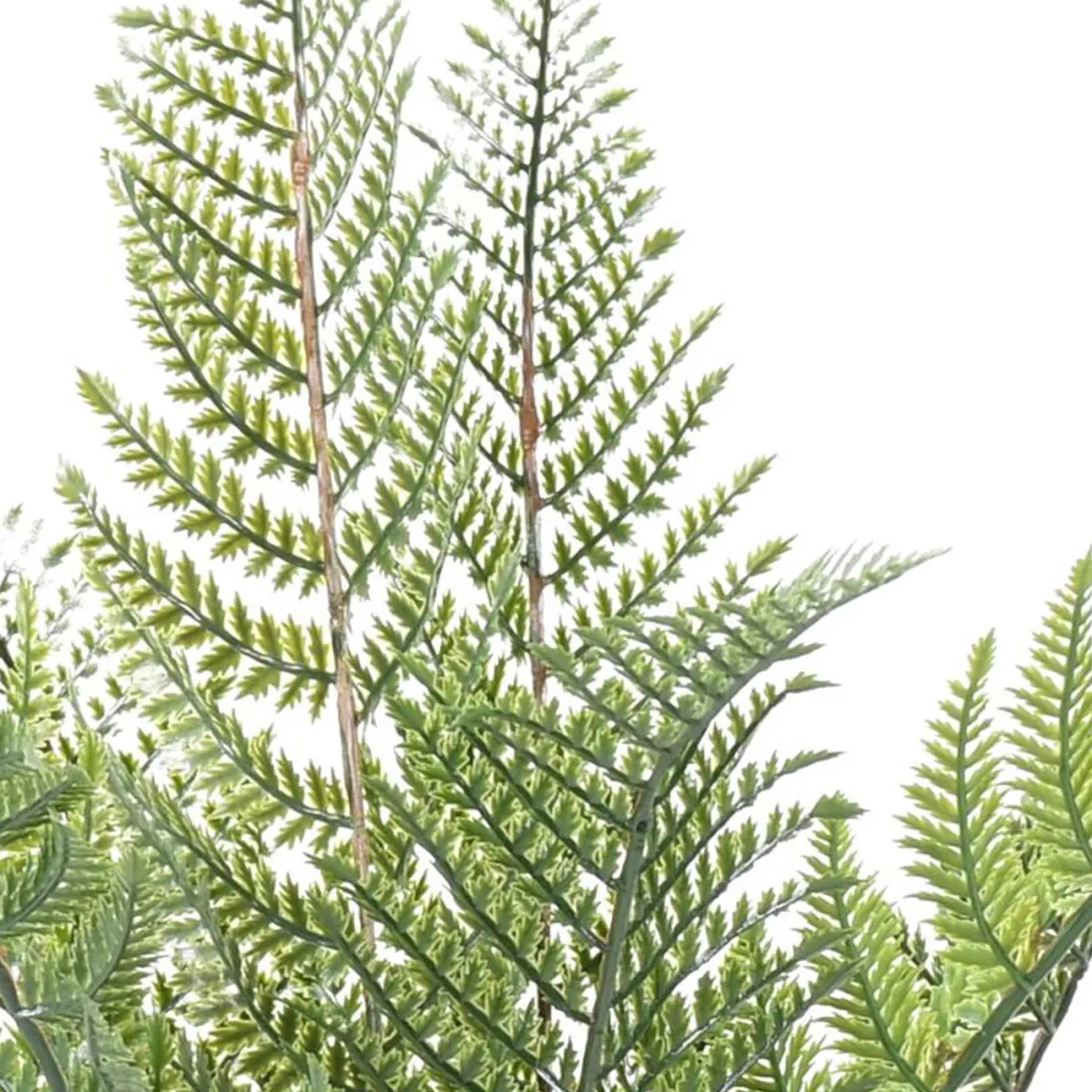 Disposant d’une très grande diversité d'espèces, les fougères (ou filicophyte) vont se développer aussi bien dans les pays tropicaux que dans les zones septentrionales, en forêt humide et sous-bois. Pour lui assurer une durée de vie prolongée en extérieur, son feuillage artificiel est en polyéthylène anti-UV. Ses 10 belles frondes (feuilles) cisaillées lui donnent un aspect buissonnant et aérien pour une ressemblance accrue à l’originale. Les tiges sont de différentes longueurs et pourront être travaillées à la main afin d’obtenir un résultat visuel réaliste. Convient aussi pour de la décoration d’intérieur.