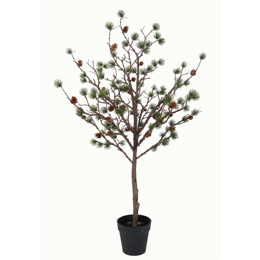 Ce pin artificiel est composé d'un tronc  et d'un feuillage vert en Polyéthylène,  Proposé en 95 cm de hauteur pour une envergure de 60 cm .Livré dans un pot PVC lesté.( plantes artificielles )