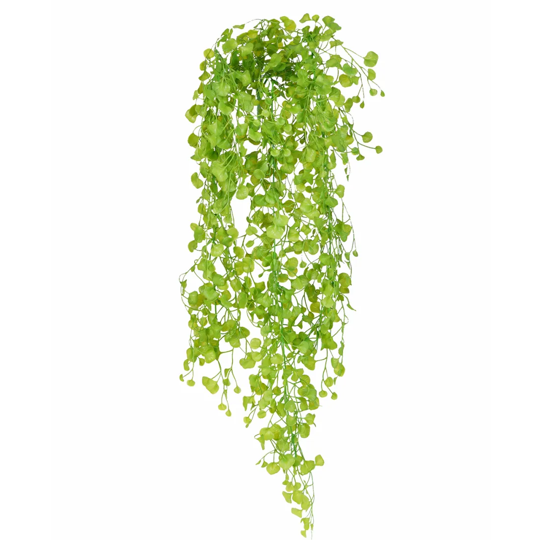 Le Dichondra rampant est une plante vivace originaire d’Australie et de Nouvelle-Zélande appartenant à la famille des Convolvulacées, couramment utilisé comme couvre-sol. Son feuillage compact en polyéthylène lui permet d’être utilisé en extérieur. Il est constitué d’une multitude de jolies petites feuilles artificielles arrondies et nervurées, d’1 à 2cm d’envergure, fixées sur des tiges souples en plastiques de longueurs variables. Cette belle plante chute synthétique d’extérieur ne nécessitera aucun entretien (ni taille ni élagage) et vous apportera durablement une belle esthétique dans votre décoration d’extérieur ou d’intérieur.