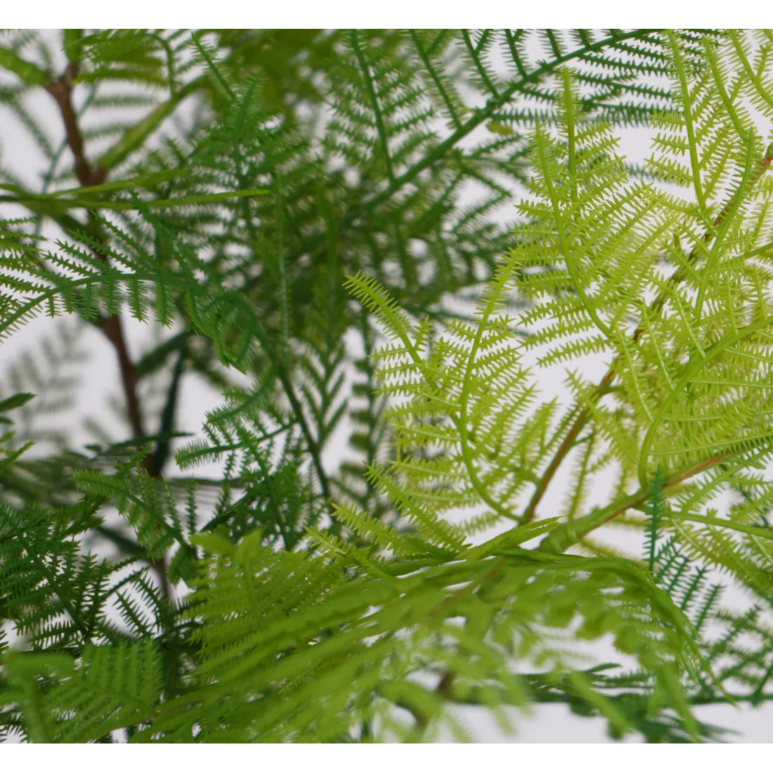 Disposant d’une incroyable diversité d'espèces, les fougères étant friandes d’humidité elles se développent pour la plupart dans les milieux tropicaux ou boisés. Cette fougère en plastique sur piquet à l’avantage d’être plus résistante et conservera longtemps sa belle couleur. Elle dispose de frondes (feuilles) légères et élégantes allant du vert clair au vert sombre, montées sur des tiges modulables pour que vous puissiez travailler plus facilement le déploiement du feuillage. Une plante synthétique qui conviendra aussi bien en extérieur qu’à l’intérieur. Aucune taille ou arrosage à prévoir, elle vous accompagnera durablement sans entretien.
