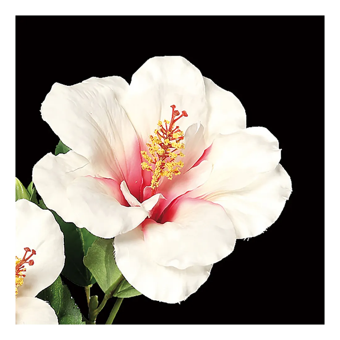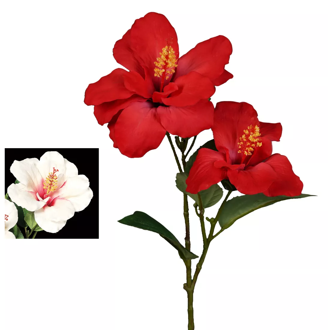 branche d'Hibiscus artificielle de 65 cm de haut pour 23 cm de large, fleuron de 14 et 15 cm de diamètre. composé de deux branches.