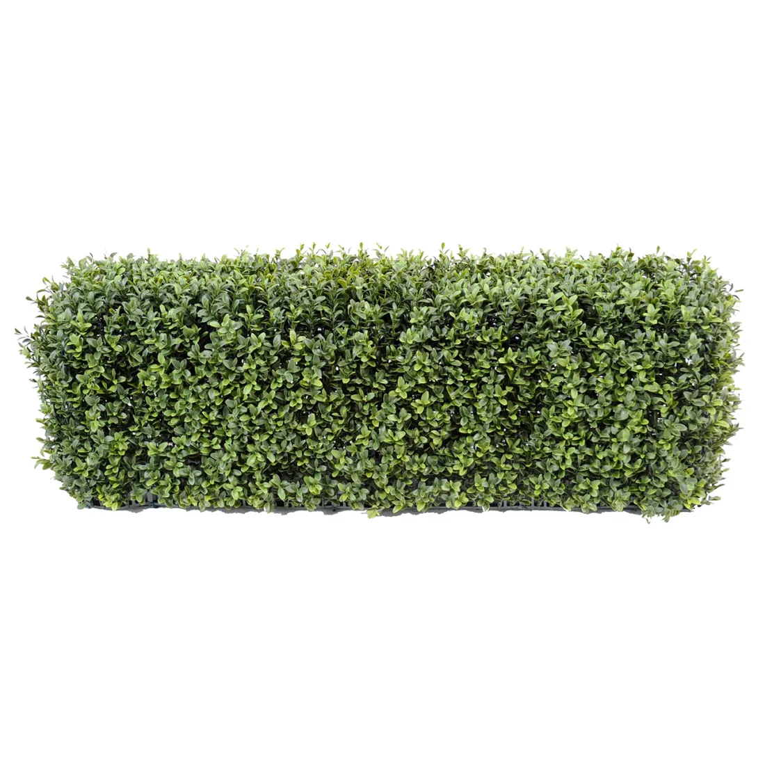 Cette haie de buis artificielle est composée d'une structure métal recouverte de buis artificiel, son feuillage, petites feuilles ovales, est sur toutes les faces et sur le dessus. Décliné en 4 dimensions de 25 à 180 cm de hauteur. produit haut de gamme feuillage polyéthylène (plastique) sur structure métal rigide galvanisé de 91 cm de longueur (plantes artificielles ) Opacité : 100%