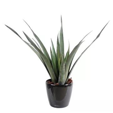 Ce faux aloé par sa rosettes de feuilles épineuses est très bien réalisée, c'est une belle plante ornementale. Associé en groupe avec d'autres plantes grasses artificielles ou avec yucca baby artificiel elle sera donner un esprit En isolé rempoté dans un pot rond de diamètre 21 cm