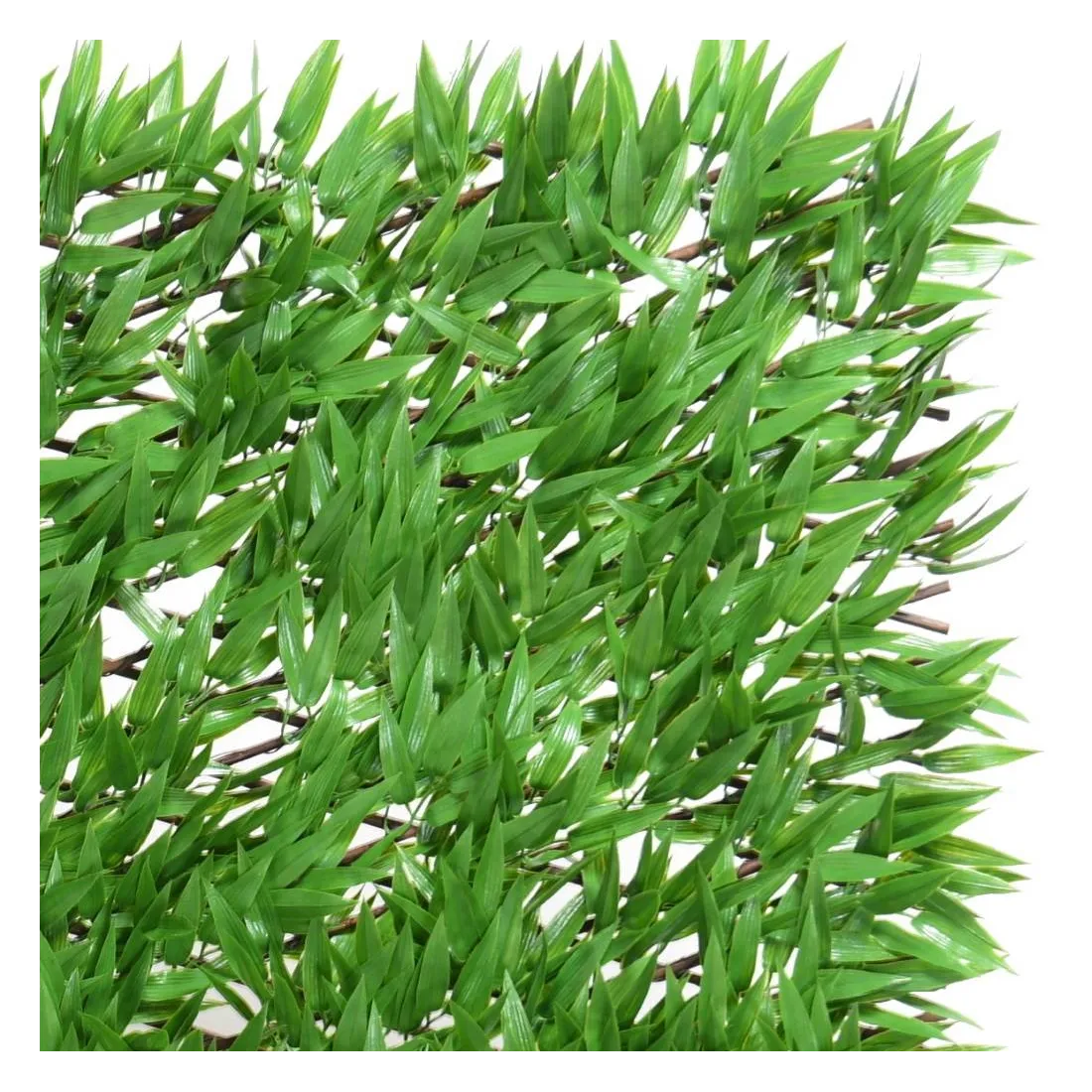 Palissade bambou artificiel en bois extensible, modulable possibilité de varier la taille, feuillage artificielle en polyéthylène (plastique) vert monté sur un treillage en bois de 200 x 100 cm
