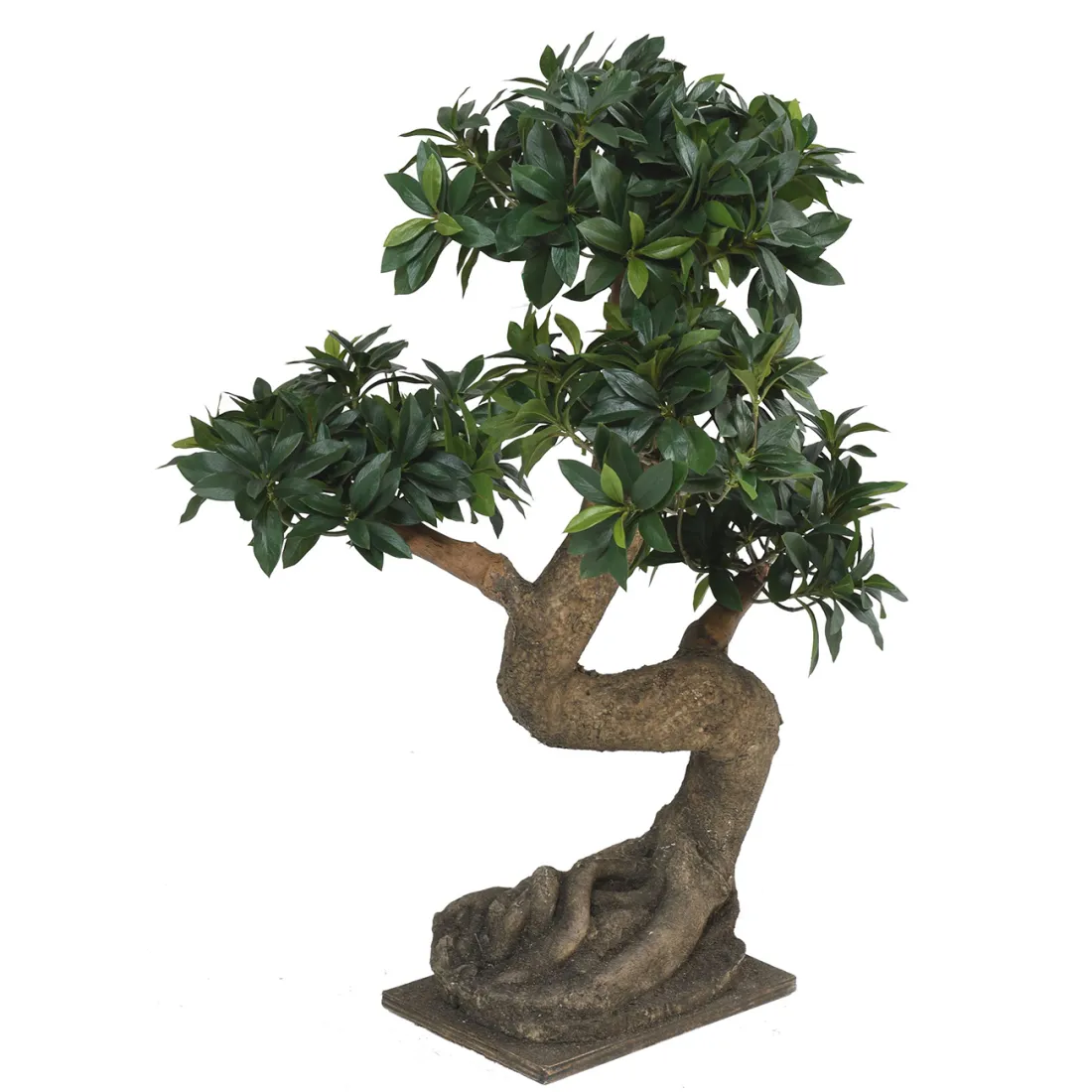 Le Bonsaï artificiel Ficus du Japon est un arbuste décoratif très prisé des architectes paysagistes. Ce bonzaï artificiel ficus du Japon est un arbre subtropical, originaire d'Asie. Superbe bonsaï artificiel, son tronc en résine imite à la perfection l'aspect d'un vrai tronc avec ses reliefs, ses aspérités, son feuillage artificiel, en tissu, disposé en 4 plateaux est ovale et doucement dentelé. Il sera difficile de distinguer le vrai du faux.Il est très réaliste, c'est véritablement un bonsaï haut de gamme.