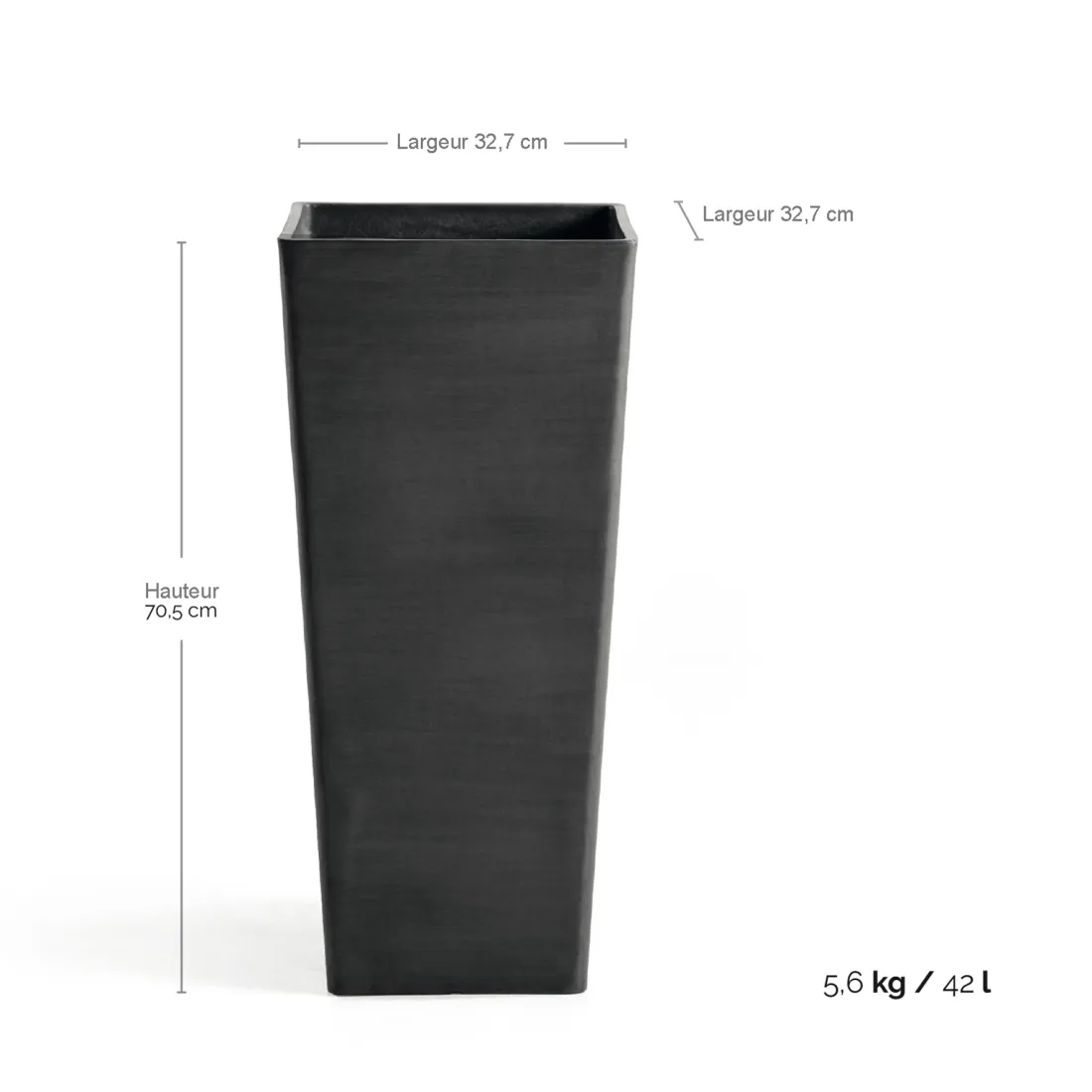 Pot ROCCA disponible en 4 couleurs gris béton, blanc grisé, gris anthracite et taupe et de 70 cm de hauteur pour une largeur de 32 cm (haut du pot)