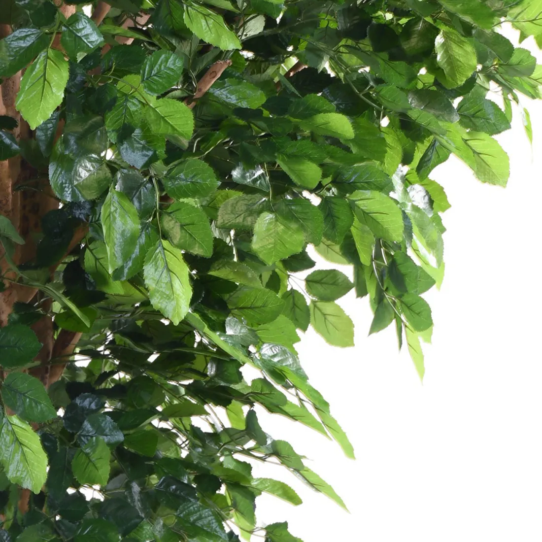 Hêtre artificiel , arbre continental artificiel proposé en 400 cm de hauteur pour une envergure de 200 cm, tronc en fibre de verre et bois et feuillages en tissu polyester (tergal). Livré dans un bac en bois (support de plantation) plantes artificielles