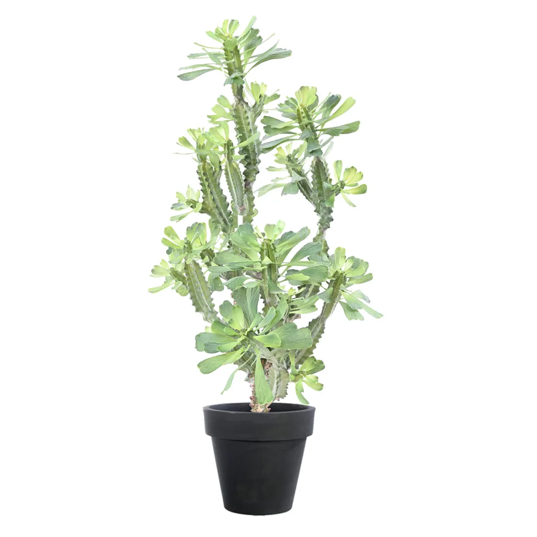 Son allure générale qui ressemble aux cactées d'où son nom euphorbe-cactusCette euphorbe artificielle est une très belle imitation de la plante naturelle. Par son aspect cette plante artificielle peut facilement être associée avec des cactus artificiels.