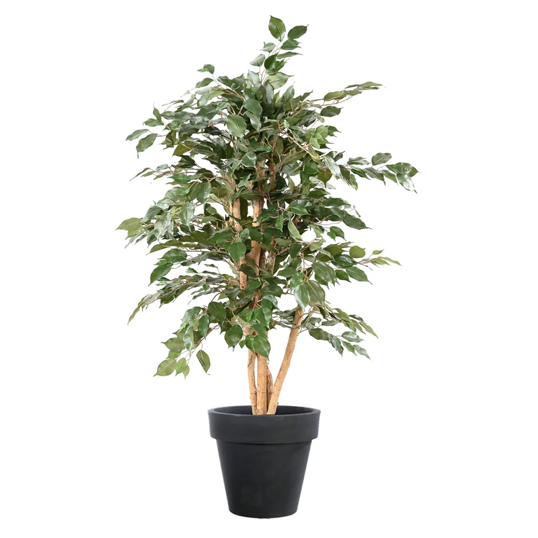 Ce Ficus Benjamina artificiel de 150 cm est une plante d'intérieur très populaire qui ne se démode pas. Ce arbuste artificiel se compose de 4 jolis troncs en bois naturel et d'un feuillage dense. Excellent rapport qualité / prix, ce petit arbre artificiel sera parfait pour végétaliser un espace