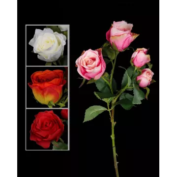Rose artificielle proposée en divers coloris: rose rouge, rose blanche, rose pêche, rose rose.  Hteur: 53 cm - Diamètre fleur: 9.5 cmMatière des fleurs et feuillages : tissuMatière de la tige : plastique Tige verte...