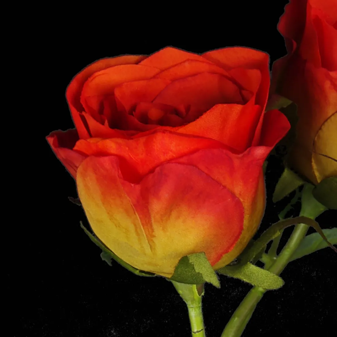Travaillées en tissu, les roses peuvent posséder un nombre de pétales très différents selon l'espèce imitée. En bouton, semi-ouverte ou complètement épanouie, c'est selon votre goût. Le point commun pour toutes les roses haut de gamme, le travail effectué sur la fleur: la matière est souple et la forme des pétales naturelle; les couleurs des fleurons peuvent être dégradées et appliquées manuellement; on observe de jolis détails sur des feuilles bien nervurées; des épines sont présentent sur la tige; les tiges sont bien finies et présentent beaux coloris. Le prix est une indication pour différencier une rose basique destinée au cimetière et une rose prévue pour élaborer de magnifiques bouquets en déco intérieure.