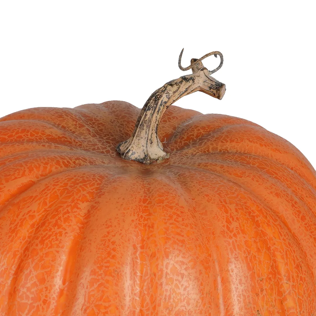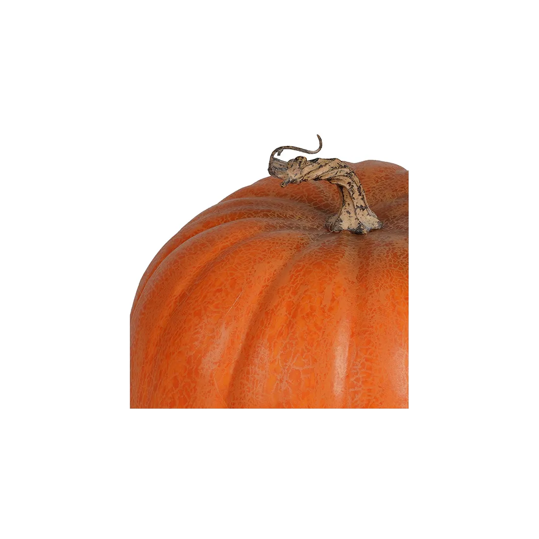 Ce potiron artificiel, déclinaison de la famille naturelle des curcubitacées, est une imitation particulièrement réussie. L'origine du nom vient de sa couleur jaune orangé. Ce faux légume, comme le vrai, s'inscrit comme un emblème de la saison automnale. D'ailleurs il existe des concours de la plus grosse citrouille. Le record dépasse les 1000kg! Notre potiron factice de forme arrondie n'est pas si lourd mais fera quand même son effet. La queue amène la finition d'une courge qui aurait été cueillie au jardin.