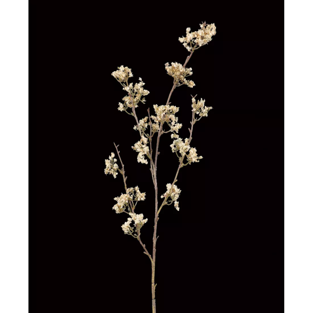 Il existe plusieurs styles de statice, soit avec des fleurs tortueuses, soit des Limonium avec avec des inflorescences de fleurettes légères dans l'esprit du gypsophile. Ici c'est plutôt la copie de statice à petites panicules. Les Limoniums sont les fleurs par excellence pour les bouquets secs. Il en existe de couleurs variées. Ici notre faux statice sec pourra être mélangé avec les tiges plus courtes de 37cm, avec toute la gamme copie du séché, ou encore avec des fleurs artificielles peu volumineuses.