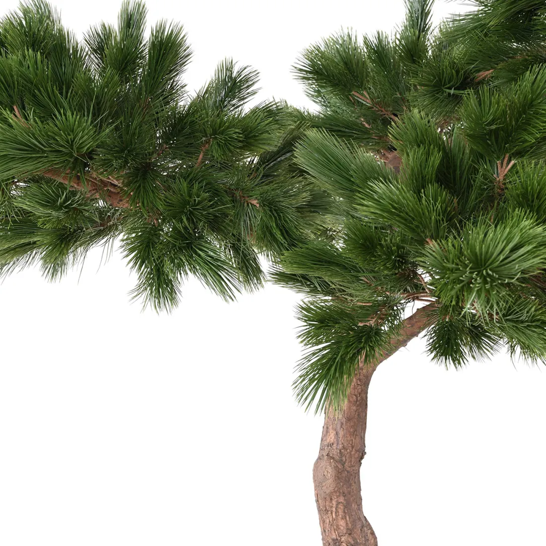 Ce Bonsaï artificiel pin forme nuage est composé d'un tronc en fibre de verre et d'un feuillage vert en Polyéthylène, 6 plateaux de 45 cm de largeur. Proposé en 150 cm de hauteur. Livré dans un pot plastique lesté, le bonsaï doit être assemblé 6 branches à emboiter et jonctions à recouvrir de pâte à bois fournie qui consolidera l'ensemble.