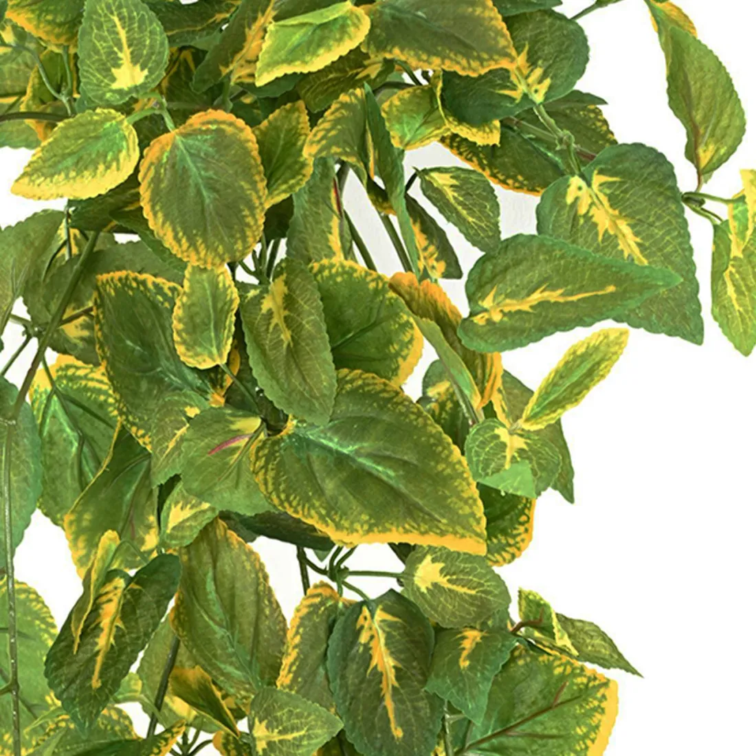 Originaire d'Indonésie la plante est appréciée comme plante décorative. Ce n’est pas avec ses fleurs discrètes (absentes sur cette fausse plante), que charme cette plante mais bien grâce à son élégant feuillage velouté, panaché de couleurs vives. Dans tous les cas ce Coleus synthétique ne nécessitera pas d'entretien contraignant, pour vous ravir de manière durable.