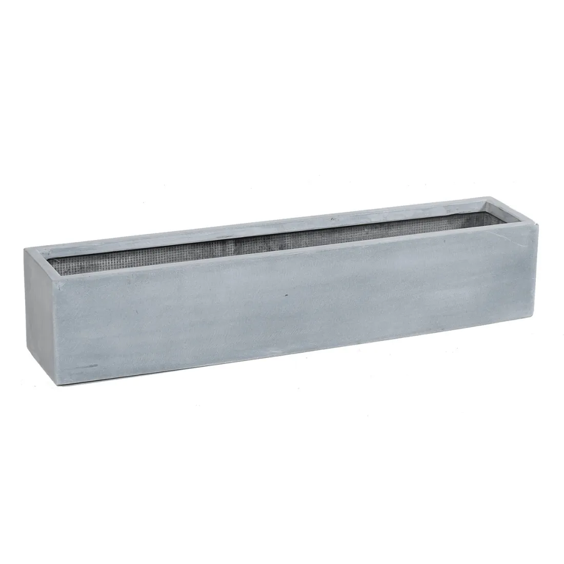 Il est important de noter que la teinte naturelle de la jardinière peut légèrement varier d'un lot à l'autre et peut également évoluer avec le temps et les intempéries, ajoutant ainsi un charme unique à chaque pièce. Pour une intégration parfaite dans votre décor, n'oubliez pas de vérifier les dimensions intérieures : longueur de 95 cm et largeur de 14 cm.