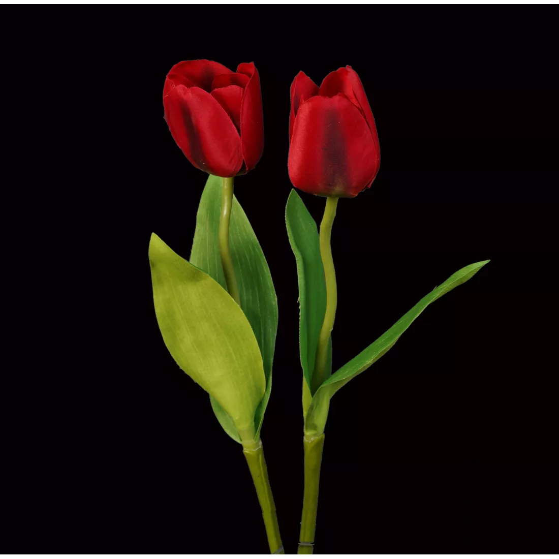 Ce joli modèle de petite tulipe est vendu en lot de 2 tiges. Classique et indémodable, la fausse tulipe d'un beau rouge flamboyant est tout à fait mignonne et facile d'utilisation. Un simple arrangement floral de tulipes est toujours esthétique car c'est une fleur gracieuse. Les associer en nombre donne un effet de masse remarquable. Comme sa consœur naturelle, la tulipe artificielle se mélange avec du mimosa pour obtenir un assortiment ensoleillé. Si vous préférez une originalité moins saisonnière, les mini fleurettes comme du gypsophile ou du wax, sont des intemporelles. Comme la rose rouge, la tulipe est symbole de passion. Si vous souhaitez sortir du conformisme, la tulipe sera une bonne alliée pour la Saint Valentin.