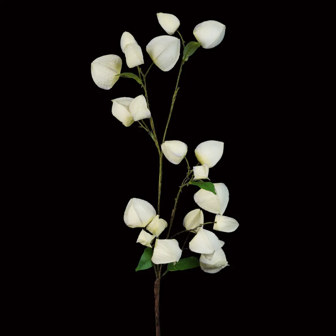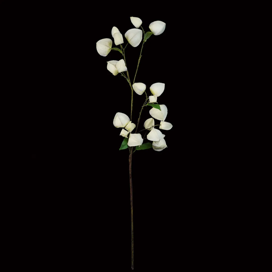 Physalis artificiel haut de 96 cm et une hampe florale de 50 cm. Tige armée, c’est-à-dire un fil de fer est intégré dans la tige cela signifie que la plante artificielle peut être façonnée selon vos souhaits. Le feuillage et les fleurs sont en tergal, tissus polyester. Proposé dans 2 coloris soit crème soit rose. Différentes tailles de capsule pour plus de réalisme de 4 à 6 cm.