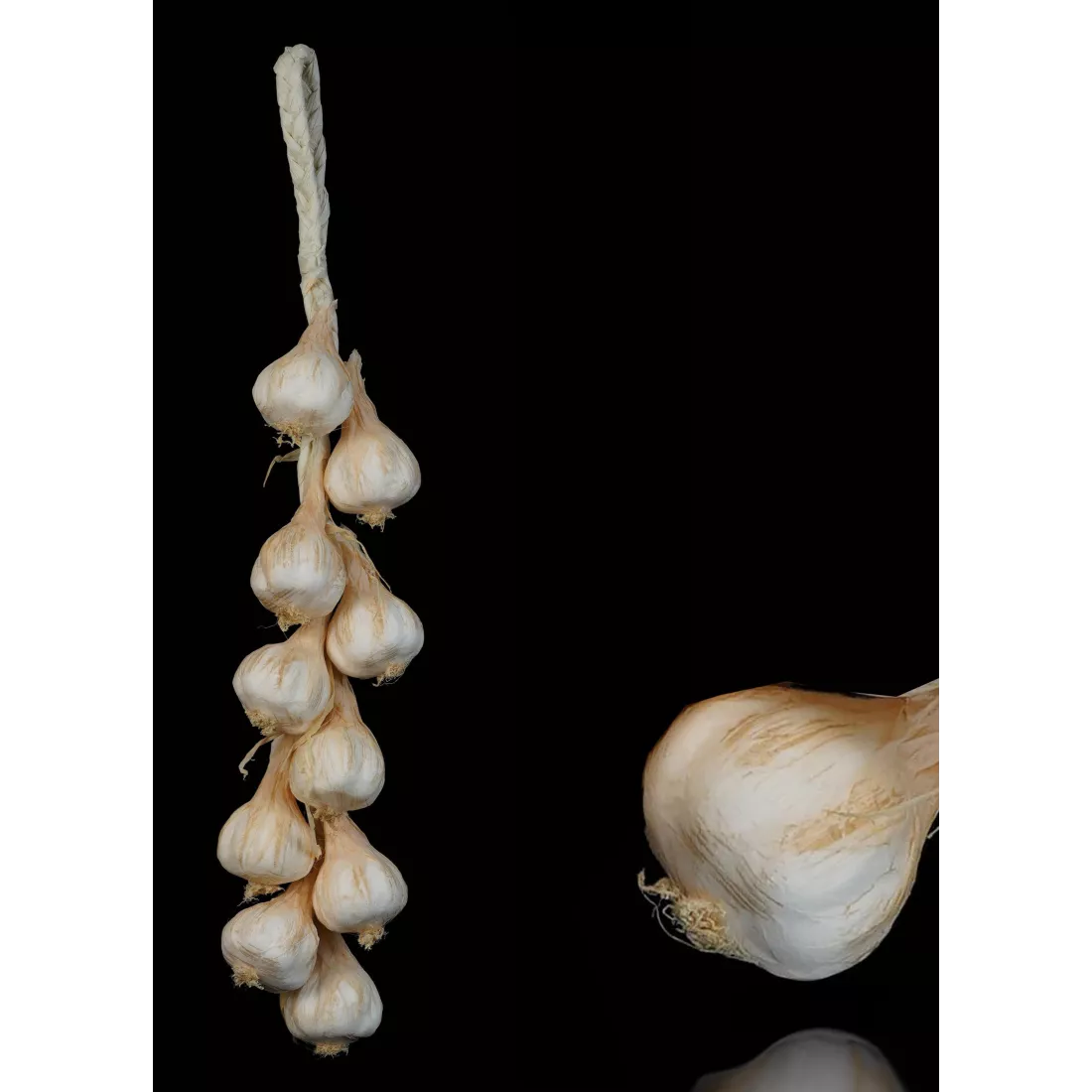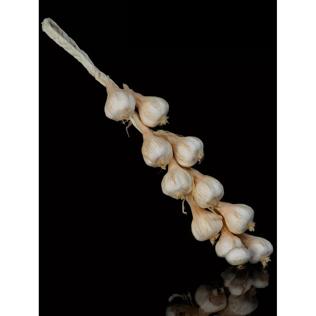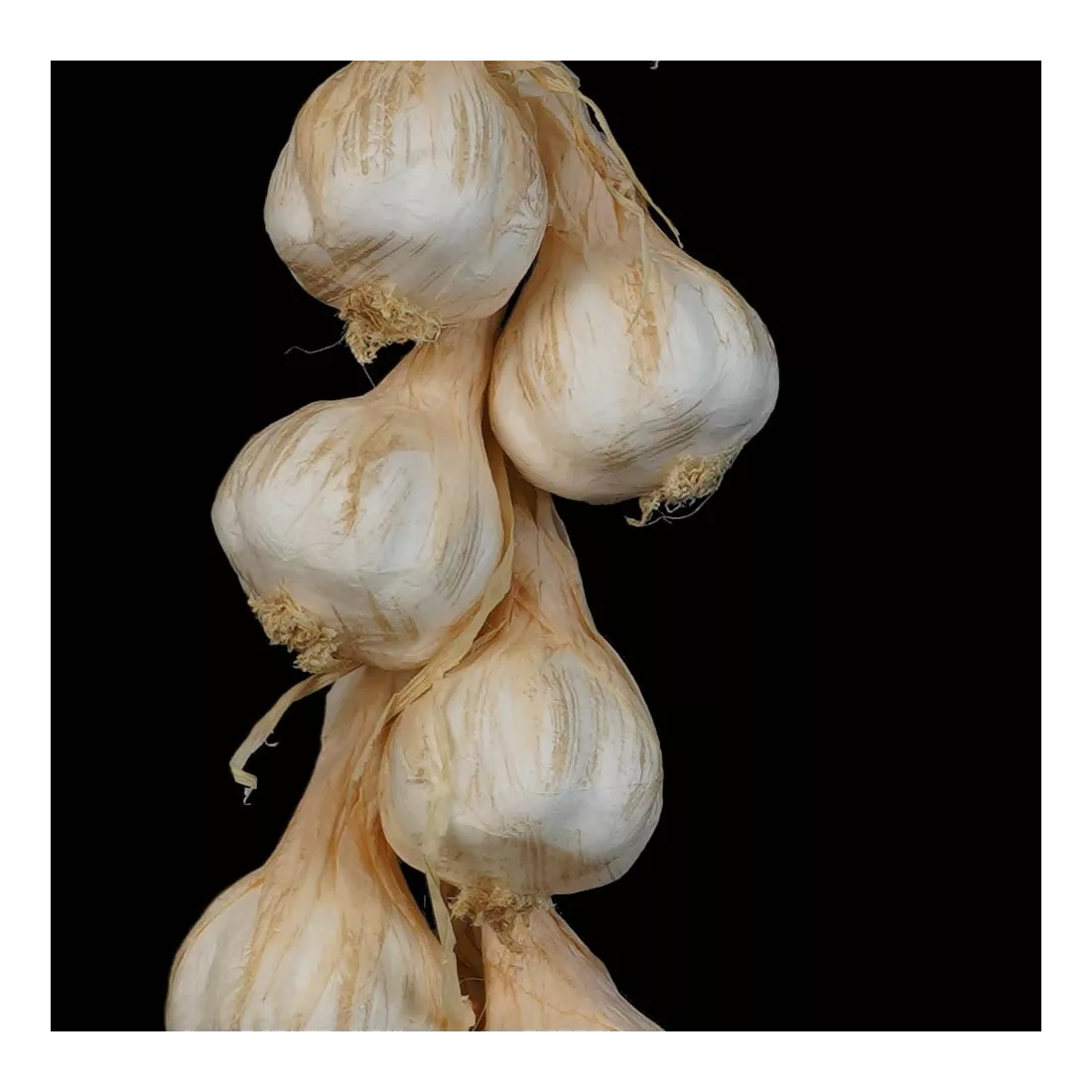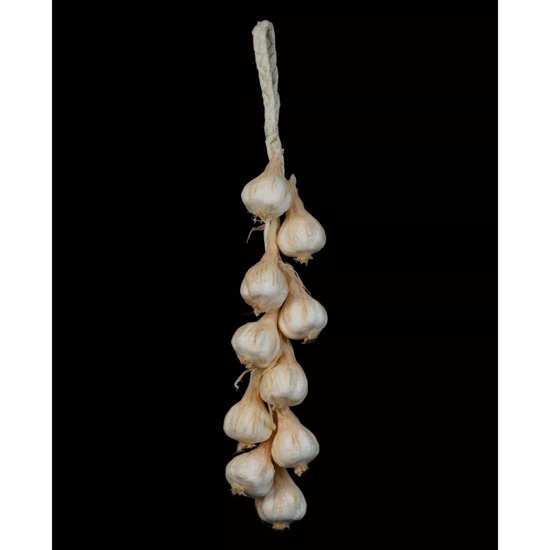 Composée de 10 têtes d'ail matière : styromousse, papier, raphia