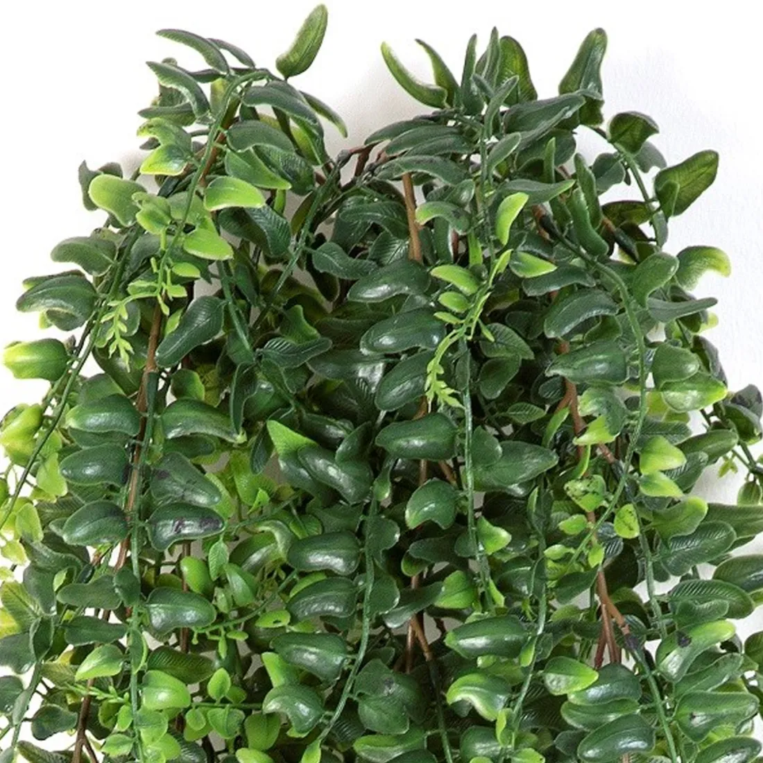 Petit feuillage plastique bien fini et bien découpé. Plante cascade touffue d'un vert mat non brillant aux tiges marron clair. Cette fougère artificielle dans le style pellea existe en 3 dimensions complémentaires. D'origine cette plante est plutôt tropicale, ses feuilles sont "rondes" et nombreuses. La vraie fougère n'est pas retombante mais les plantes artificielles permettent de s'affranchir quelques fois de la nature pour s'adapter aux besoins de nos décorations intérieures ou extérieures.