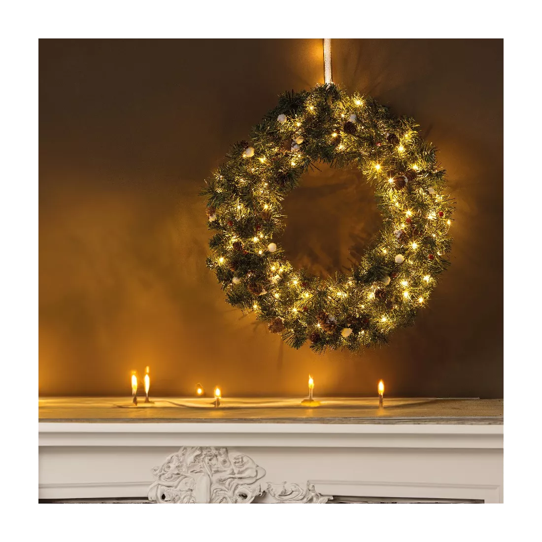 Convient pour l'extérieur. Guirlande lumineuse 1ère à dernière ampoule 16m - Adaptée pour les sapins de H120 cm à 210cm. Pour les tailles supérieures plusieurs guirlandes peuvent être nécessaires.