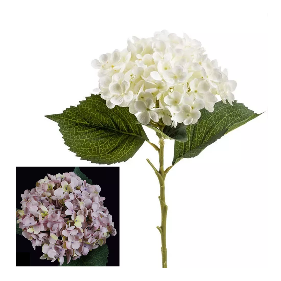 L'Hydrangea est un genre d'arbuste très répandu dans les jardins. Il existe une multitude de fleurs très différentes de forme et de coloris. Celui-ci présente de jolies têtes arrondies élaborées avec des pétales de petite dimension environ 1.5 cm. Deux couleurs au choix blanc/crème et vieux rose, des teintes adaptées à la tendance décorative actuelle. Pour mélanger en bouquet, d'autres hortensias, des pivoines, du cerisier fleuri, ou de fausses baies.