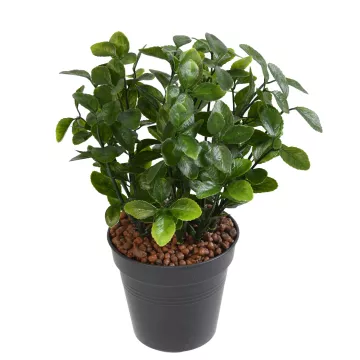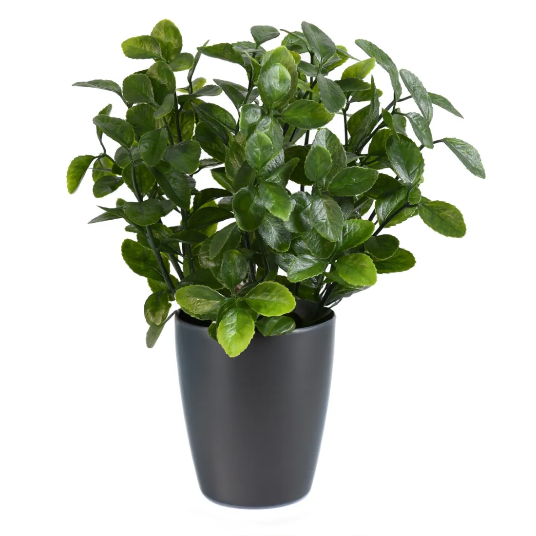 Nous vous proposons une magnifique reproduction de cette plante, vert foncé avec des nuances plus claire, fabriquée en polyéthylène, un matériau plastique de haute qualité qui assure une excellente durabilité en extérieur. Chaque feuille est soigneusement conçue pour refléter les caractéristiques de la plante naturelle : elle présente une forme ovale avec des contours ciselés et des nervures bien définies, offrant ainsi un rendu très réaliste. Livré sur pic de 6 cm, ce joli buisson de 28 cm de hauteur, saura s’intégrer facilement dans votre décoration intérieure comme extérieure.