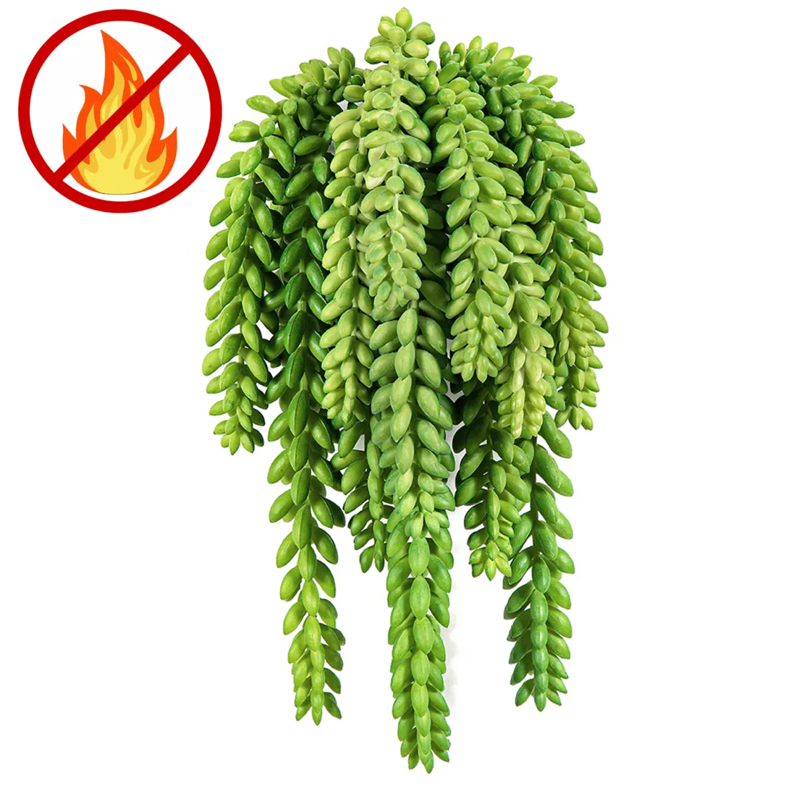 Plante grasse au port retombant de 30 cm pour une largeur de 17 cm plante en polyéthylène, très belle imitation de l'original. C'est une plante vivace succulente, originaire du Mexique. Par ses longues tige, cette belle succulente est également appelée "queue d'âne". Cette succulente a subit un traitement anti feu dans la masse lors de sa conception, vous retrouver les éléments ci dessous.