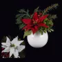 Le Poinsettia est l'une des plus jolies plantes d'intérieur, également appelée l'étoile de Noël. Cette potée est composée de deux fleurs artificielles ou plutôt deux petits Poinsettia artificiels blancs ou rouge.
