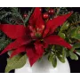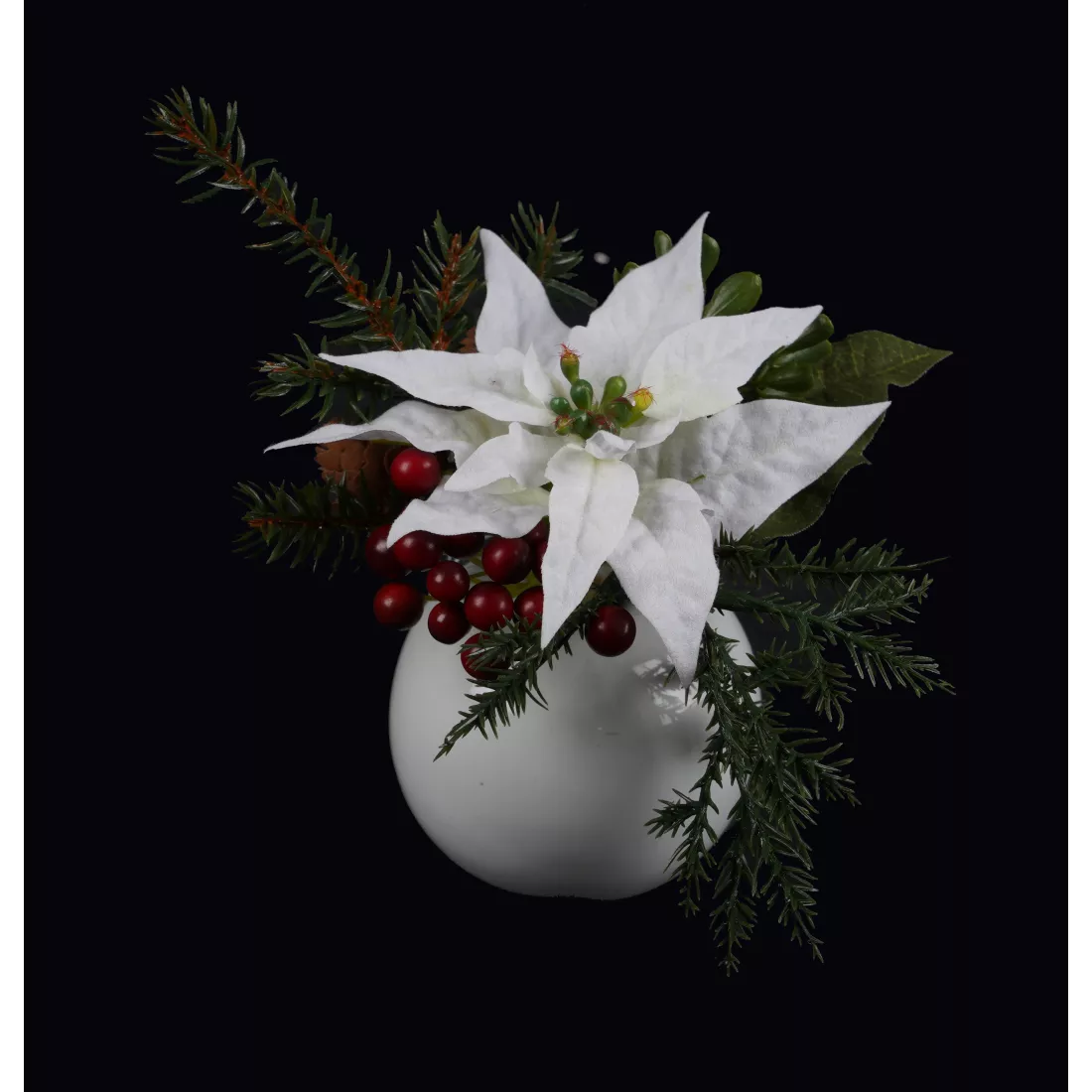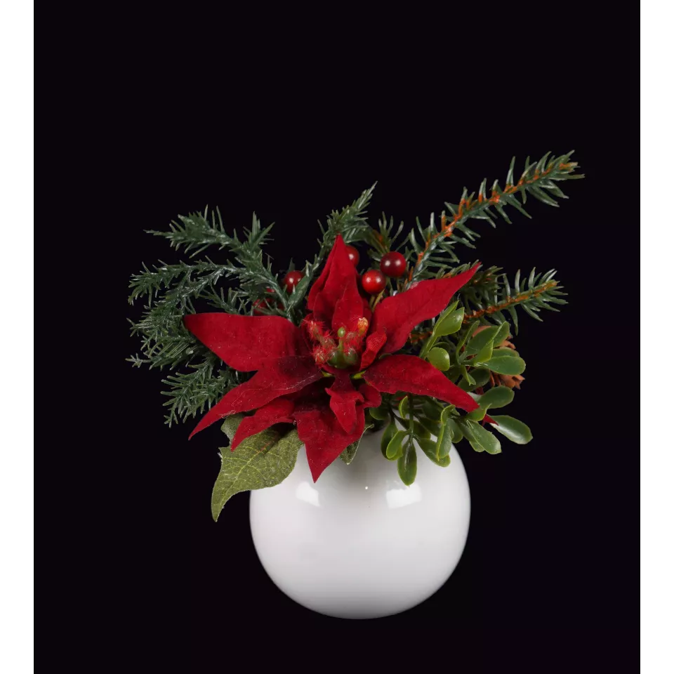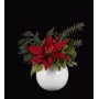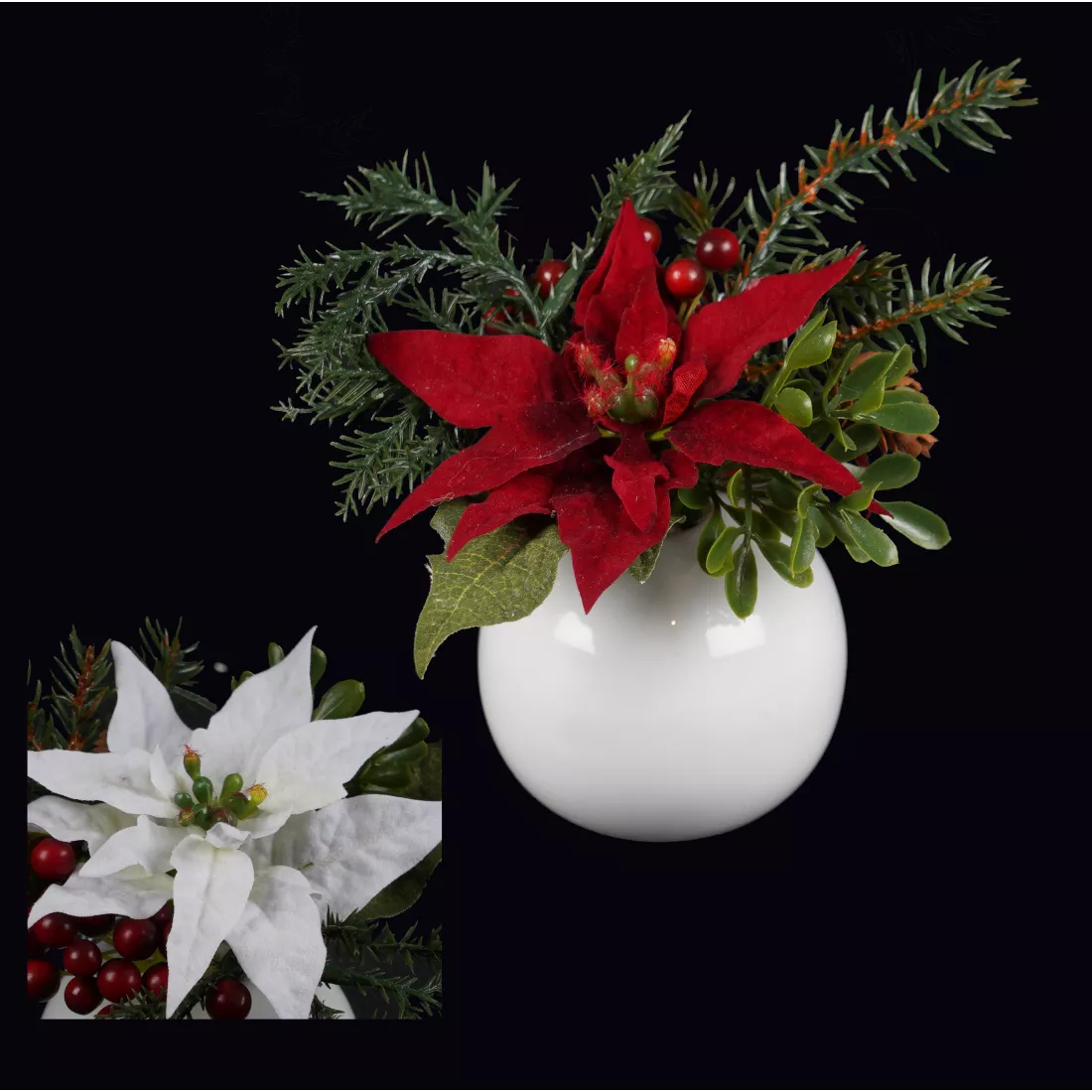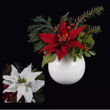composition POINSETTIA, sapin et baies artificiel en pot céramique blanc, hauteur 13 cm rouge ou blanc