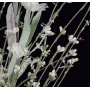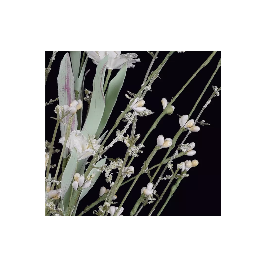 Ce bouquet blanc pur correspond aux standards décoratifs actuels avec son esprit sec. Le touché est réaliste, les fleurs imitent la même texture que les vraies fleurs séchées avec un bruissement quasi identique. Utiliser seul ou plusieurs bouquets, à installer dans un vase. En mélange, cette composition blanche s'accorde à merveille avec d'autres bouquets du même genre colorés. Se marrie bien avec les décorations de Noël, les baies, les feuillages verts et les coquelicots.