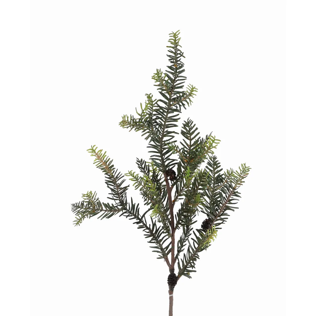 Cette branche de faux conifère est conçue avec des épines en plastique, offrant une texture douce au toucher et un aspect très naturel qui imite parfaitement les conifères. Les mini pommes de pin naturelles ajoutent un détail authentique et contribuent à l’aspect réaliste de l’ensemble. Que ce soit pour Noël ou pour une décoration intérieure ou extérieure (ponctuelle), cette branche de sapin est idéale pour apporter de la convivialité à votre espace. Cette belle imitation permet une installation facile dans des vases ou comme élément décoratif dans divers arrangements floraux. Elle est idéale pour être utilisée dans des compositions florales, des couronnes, ou comme décoration de table. Elle s’intègre également parfaitement en décoration murale pour un look saisonnier d'automne ou d'hiver. Mais cette tige de sapin est légère et polyvalente, elle accompagne aisément des fleurs artificielles plus printanières. Son design passe partout et sa qualité supérieure en font une option parfaite pour tous vos besoins créatifs.