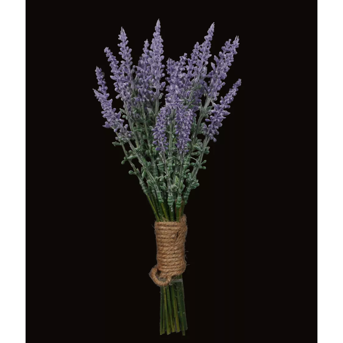 Petit bouquet de fausse lavande dans un esprit séché. Les mini fleurs violettes de la lavande naturelle sèchent à la fin de la floraison. Les brins liés par un corde fine (fibres naturelles) imite la fleur à ce stade de la plante, comme si c'était l'époque de la récolte pour la transformer en petits sachets parfumés. Matière pvc qui permet des détails que le tissu n'autorise pas.