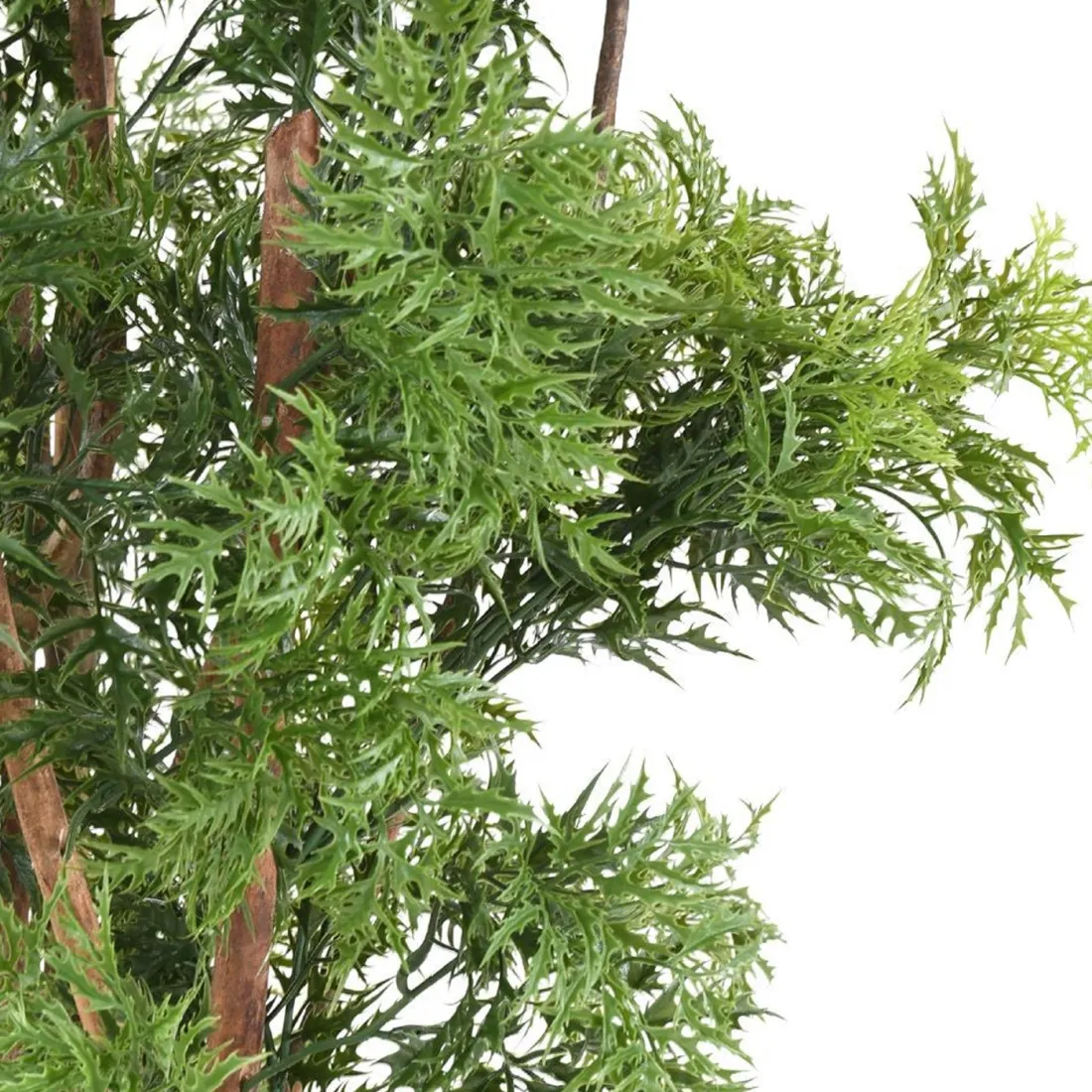Ce cyprès artificiel junipérus est composé d'un tronc en bois naturel et d'un feuillage vert 2 tons en Polyéthylène (plastique). Un choix de 3 déclinaisons est proposé pour cet arbre artificiel, allant de 105 à 160 cm de hauteur.