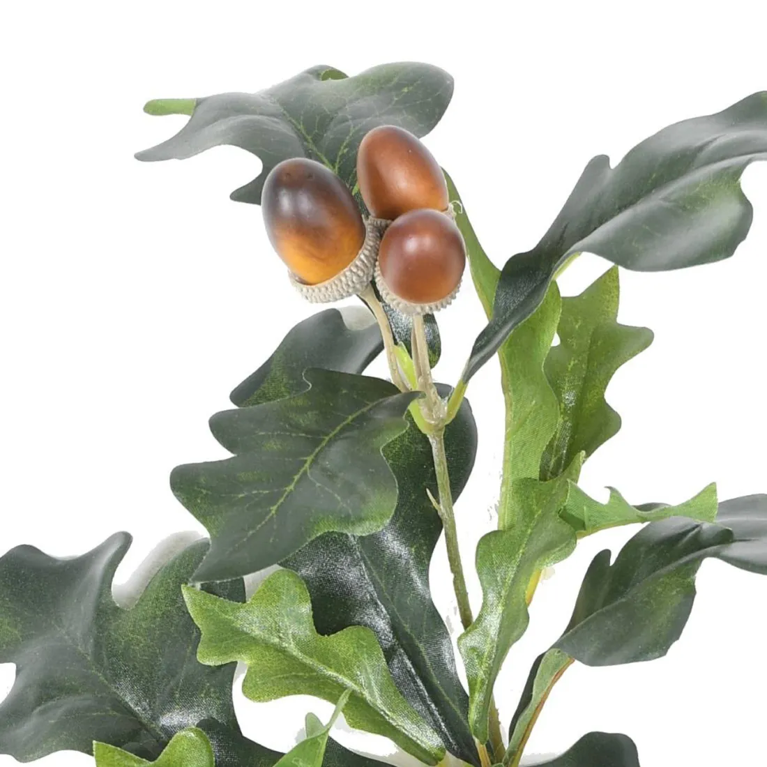 feuillage artificiel de chêne d'une hauteur totale de 70 cm et d'une largeur 25 cm composé de 6 glands, avec à la base un piquet de 35cm. La hauteur du feuillage est de 35cm.