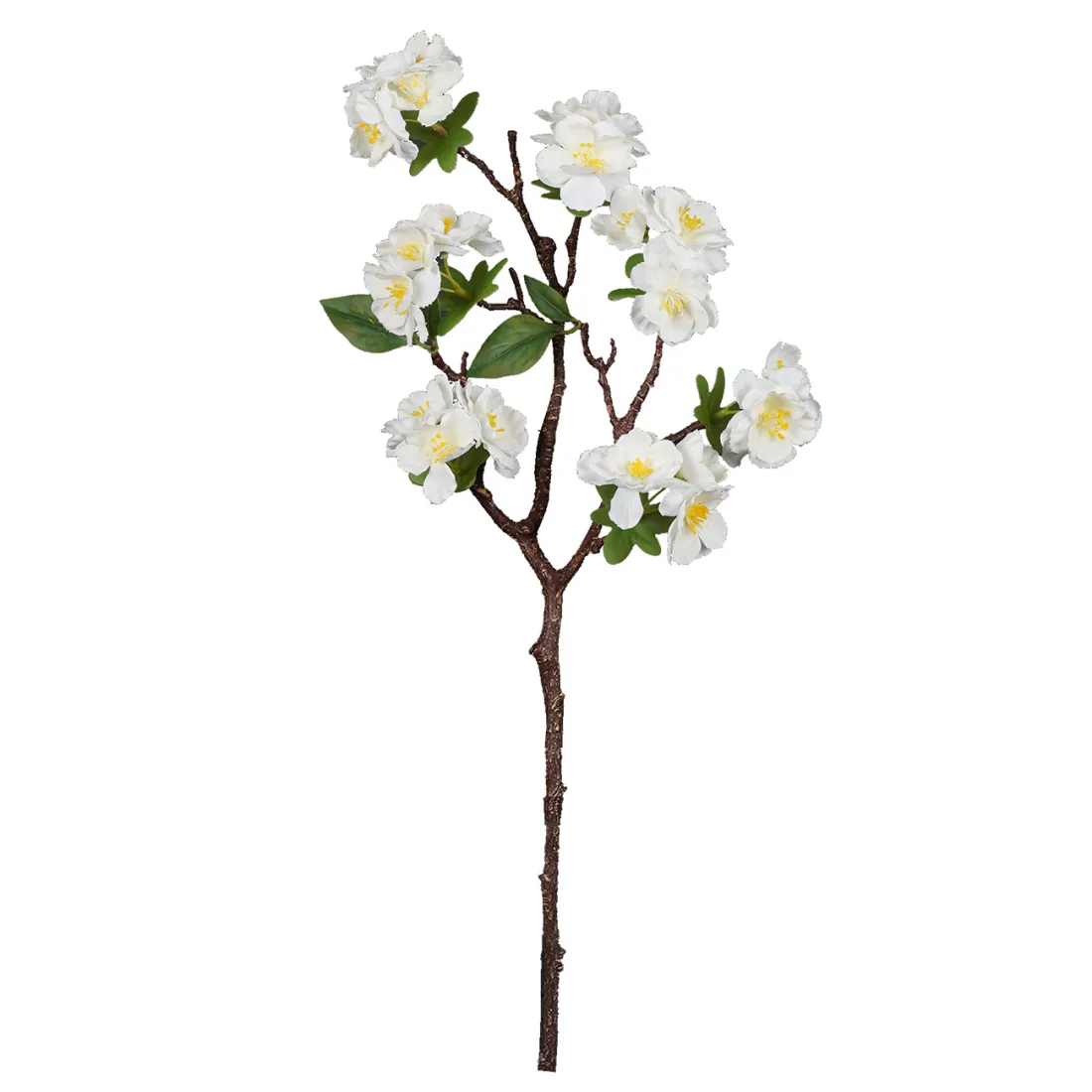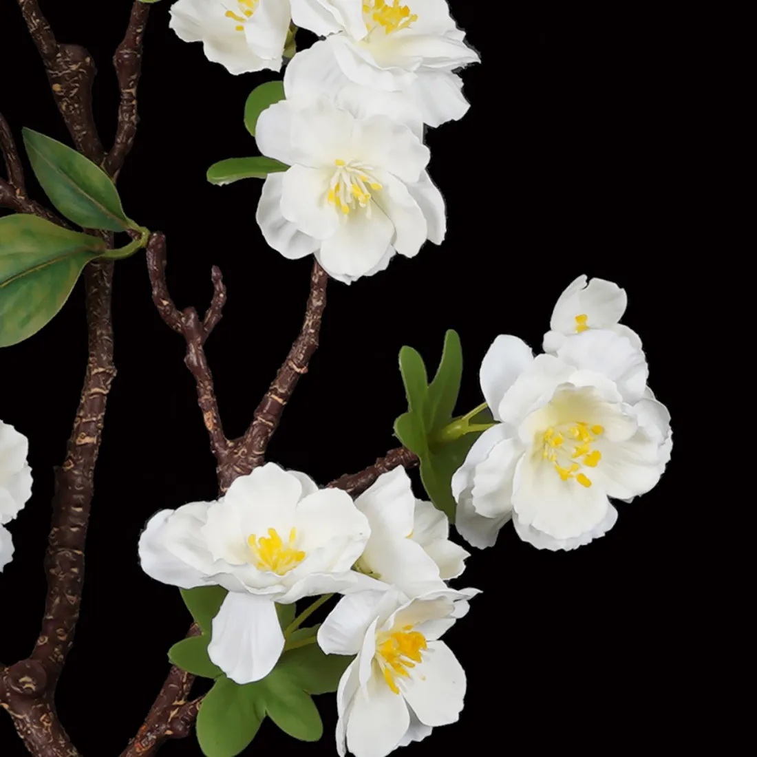 Cette jolie branche de cerisier en fleur, version tissu, possède des fleurs à simple, double, et triple pétales. Le touché est doux. Le coeur arbore des étamines jaunes. Le branchage imite bien le bois naturel marron strié de teinte caramel. Déclinaison des fleurons en deux coloris, blanc pour le cerisier à fruits et rose tendre pour le cerisier ornemental.