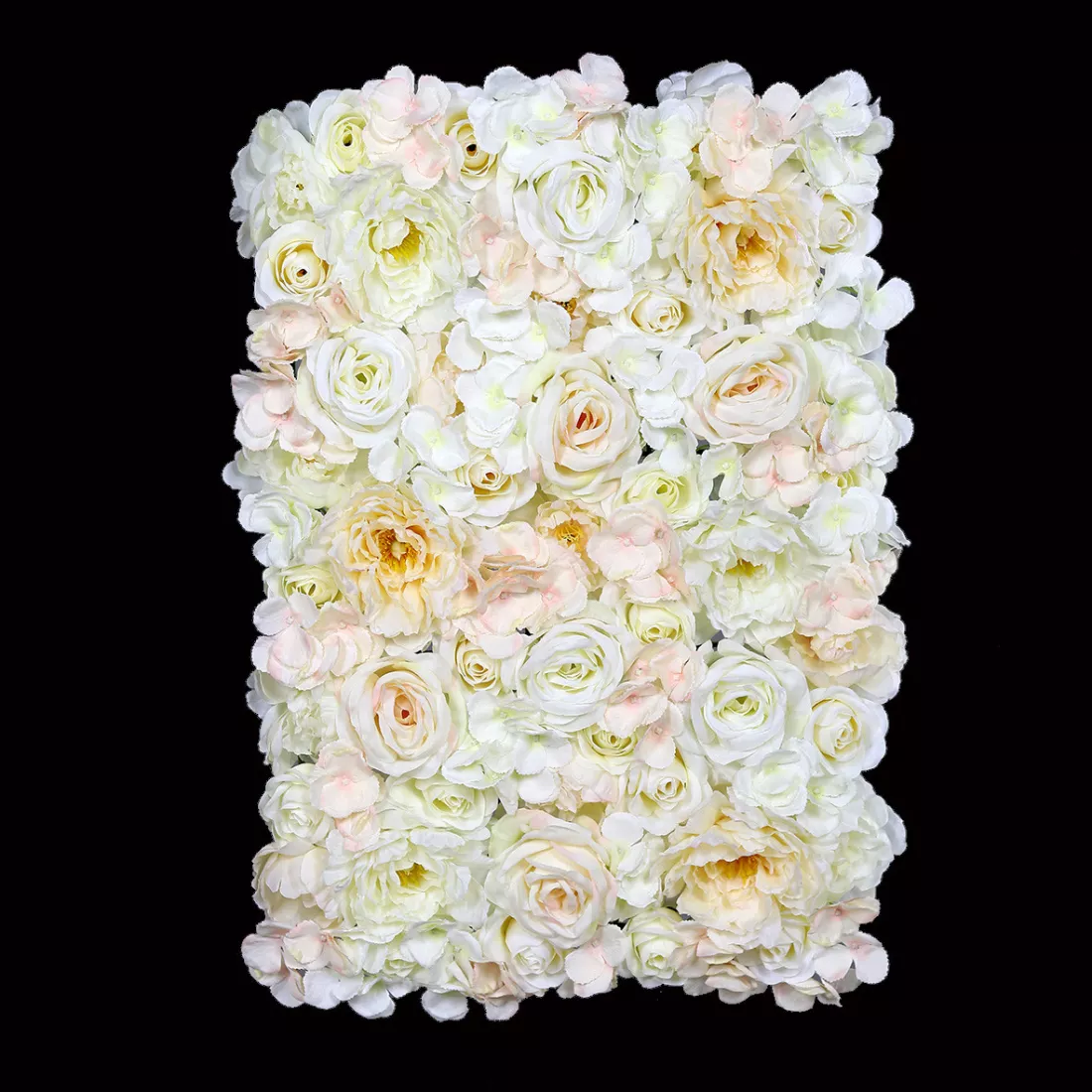 Ce mur de fleurs artificielles est composé de pivoines, de roses et d'hortensias. Il mesure 40 cm par 68 cm.