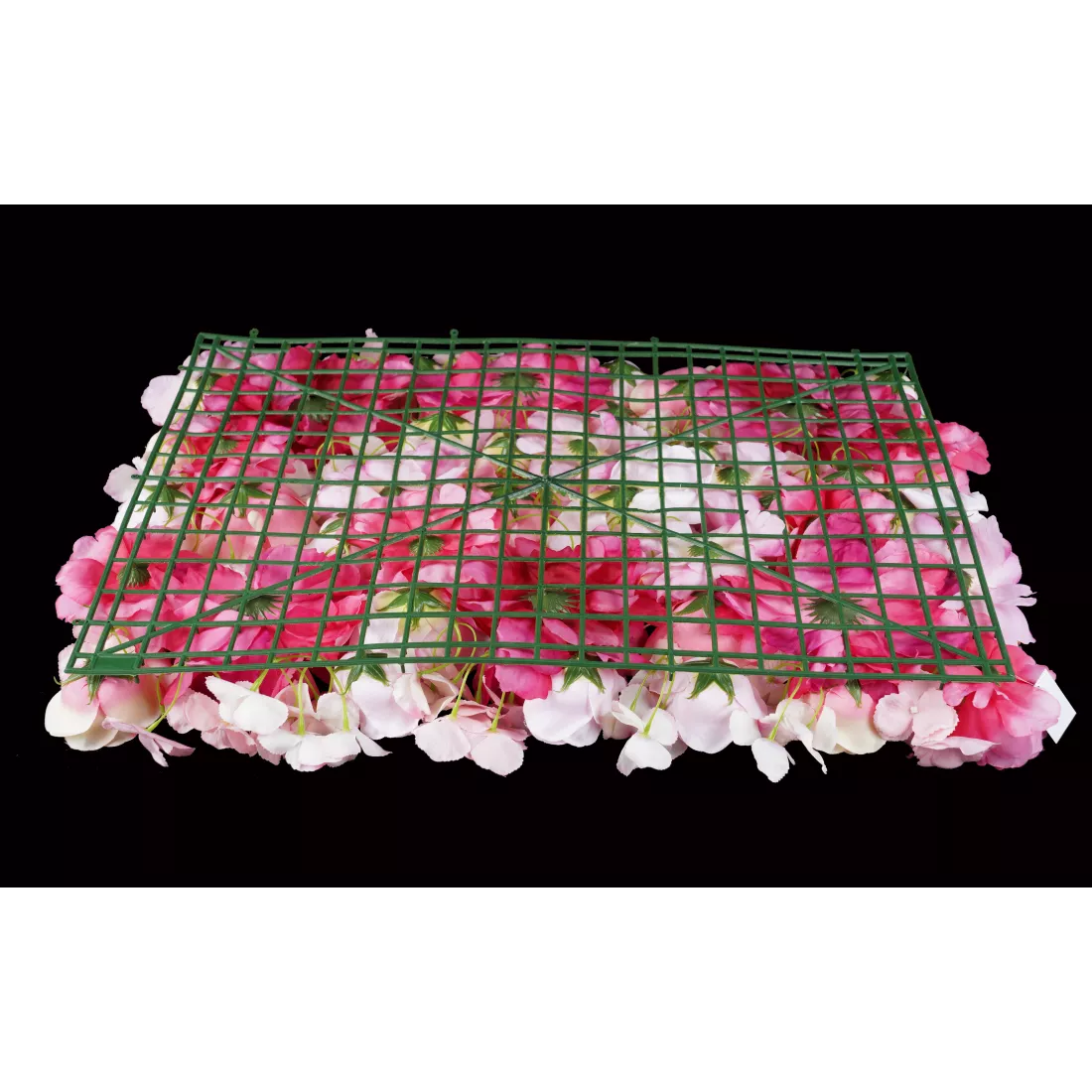 Fleurs fixées sur un treillage plastique de 39 x 59 cm. les murs sont clipsables entre eux.