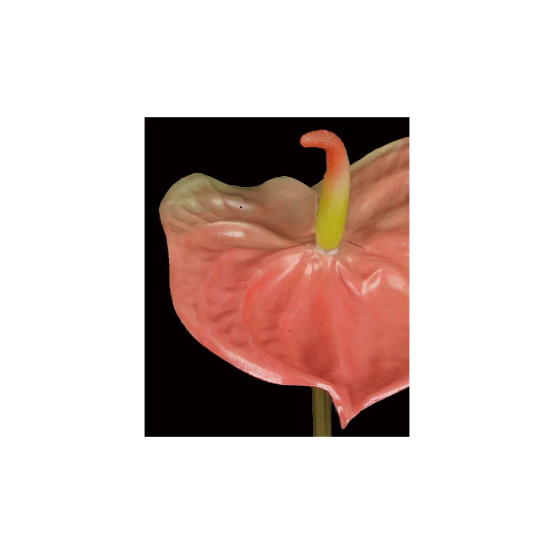 Plutôt une fleur tropicale à l'origine, l'Anthurium est une plante bien implantée dans nos intérieurs. Il existe plusieurs couleurs à l'état naturel; ici nous avons un joli rose panaché d'un peu de vert. Fleur artificielle très déco qui s'accorde avec de nombreuses autres fausses fleurs. Matière utilisée, le plastique pour être plus véridique; l'Anthurium naturel possède un aspect "ciré".